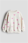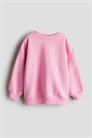 Топ оверсайз из толстовки с мягкой ворсистой изнанкой. Круглый вырез с ребристой отделкой, спущенные плечи и длинные рукава. Ребристые манжеты и подол.