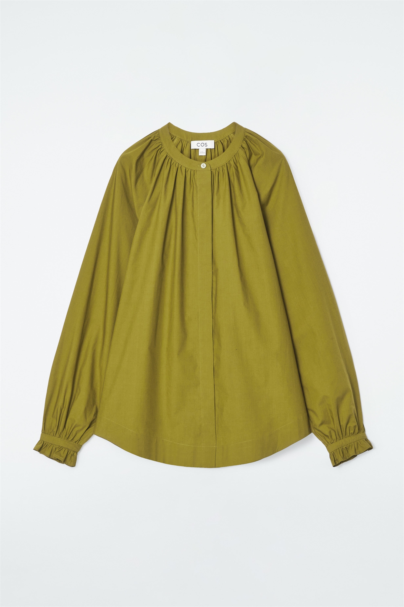 Земляные тона - основа коллекции женской одежды этого сезона. Эта оливково-зеленая блузка с мягкими складками у выреза горловины и манжетами сшита из хлопка, который обеспечивает естественную воздухопроницаемость в прохладную погоду. Свободный крой Застежка на пуговицы Ткань: 100% хлопок. Без учета отделки / Машинная стирка Длина по спинке для размера EU 36 составляет 71,5 см / Модель носит размер EU 36