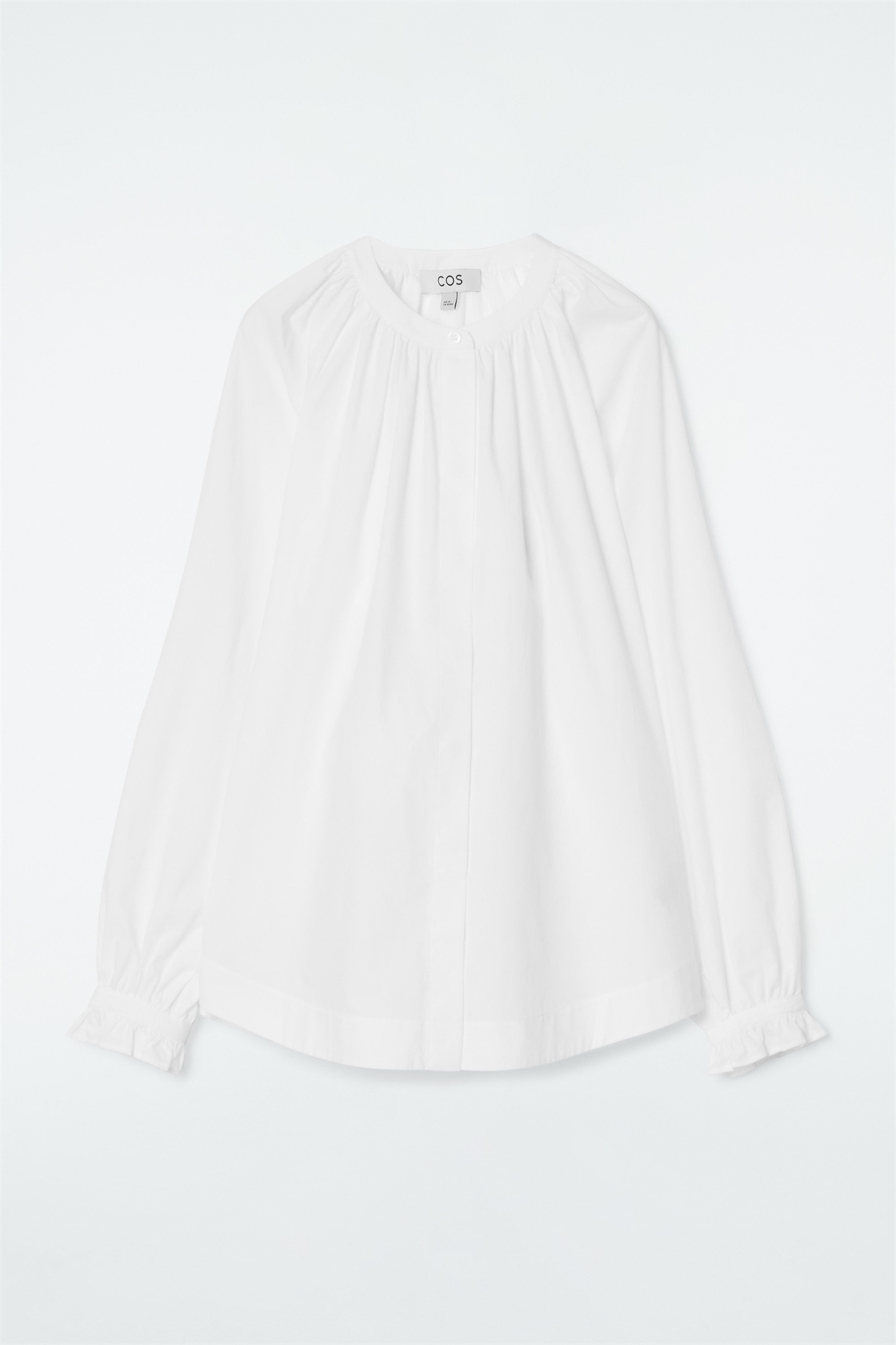 В этом сезоне наша женская коллекция оживилась благодаря свежему белому цвету. Эта блузка с небольшим вырезом и манжетами выполнена из хлопка, который обеспечивает естественную воздухопроницаемость в теплые дни. Свободный крой Застежка на пуговицы Внешняя ткань: 100% хлопок. Детали не учитываются/Машинная стирка Длина по спинке в размере ЕС 36 = 71,5 см/Модель носит размер ЕС 36