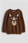 Джемпер из мягкого жаккардового трикотажа из хлопка. Круглый вырез, длинные рукава и окантовка по вырезу, манжетам и подолу.