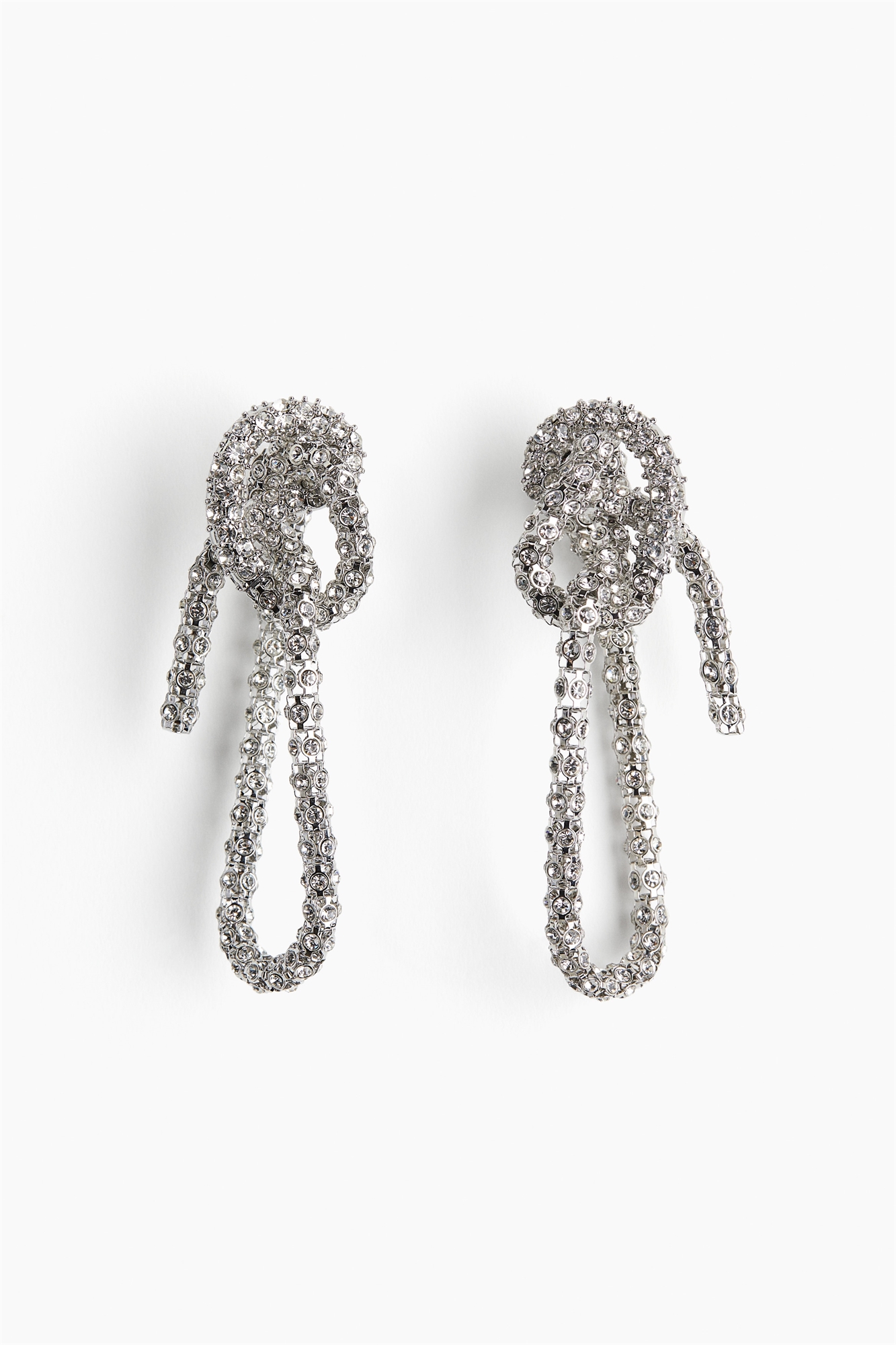 Коллекция Studio. Ослепительные металлические серьги, созданные из цепочки металлических и стеклянных стразов. Одна цепочка огибает ухо и крепится к основе с помощью штифта.