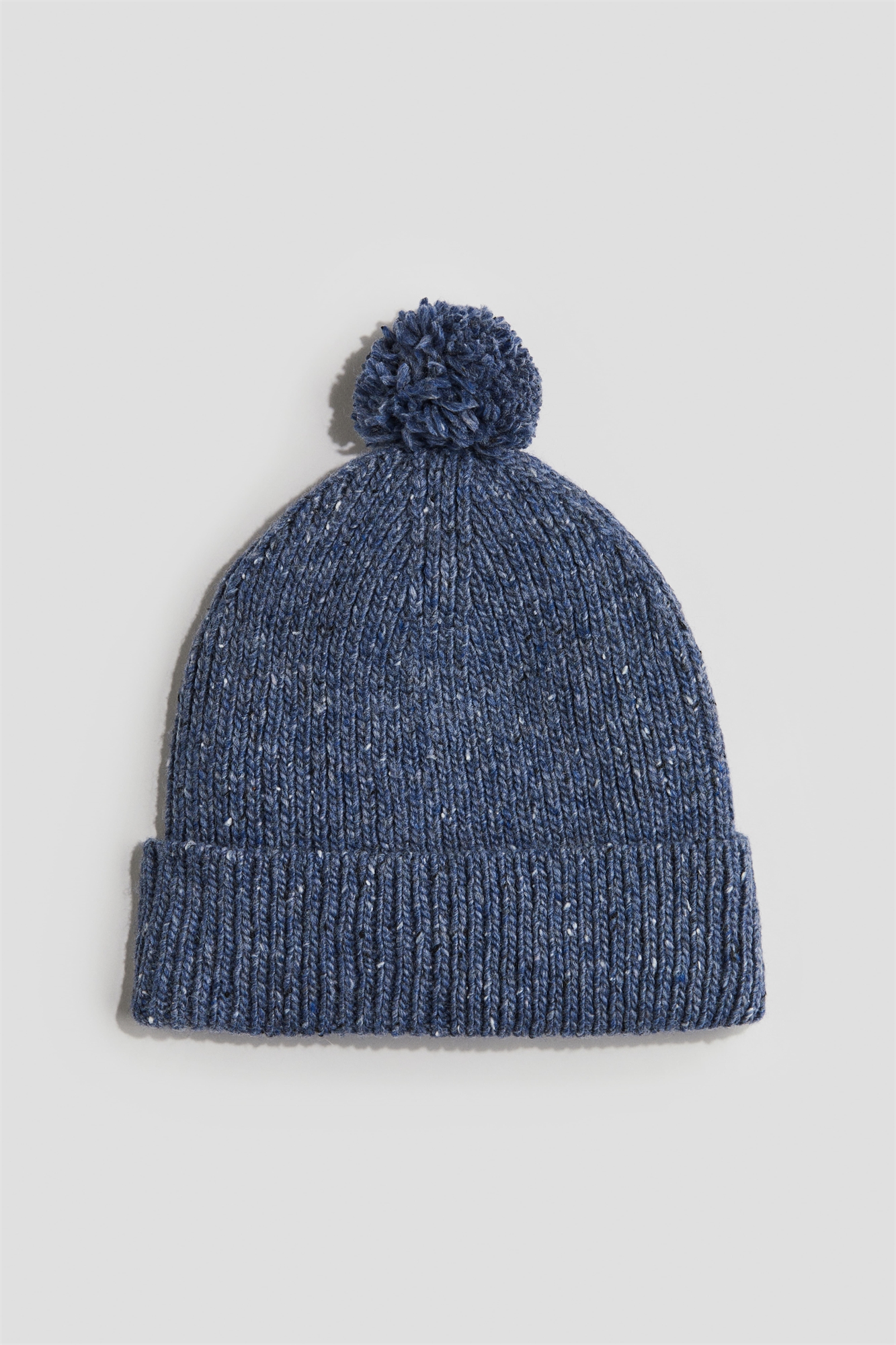 Бини из мягкого трикотажа в рубчик с помпоном на макушке и подворотом на подоле.