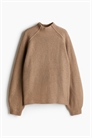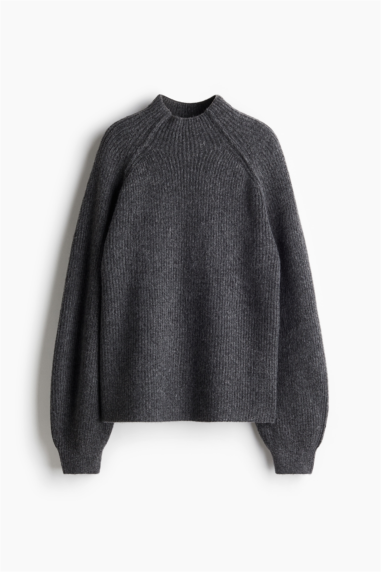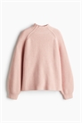 Джемпер-водолазка свободного кроя из мягкого трикотажа в рубчик с длинными рукавами-седлами с открытыми швами и облегающими манжетами.