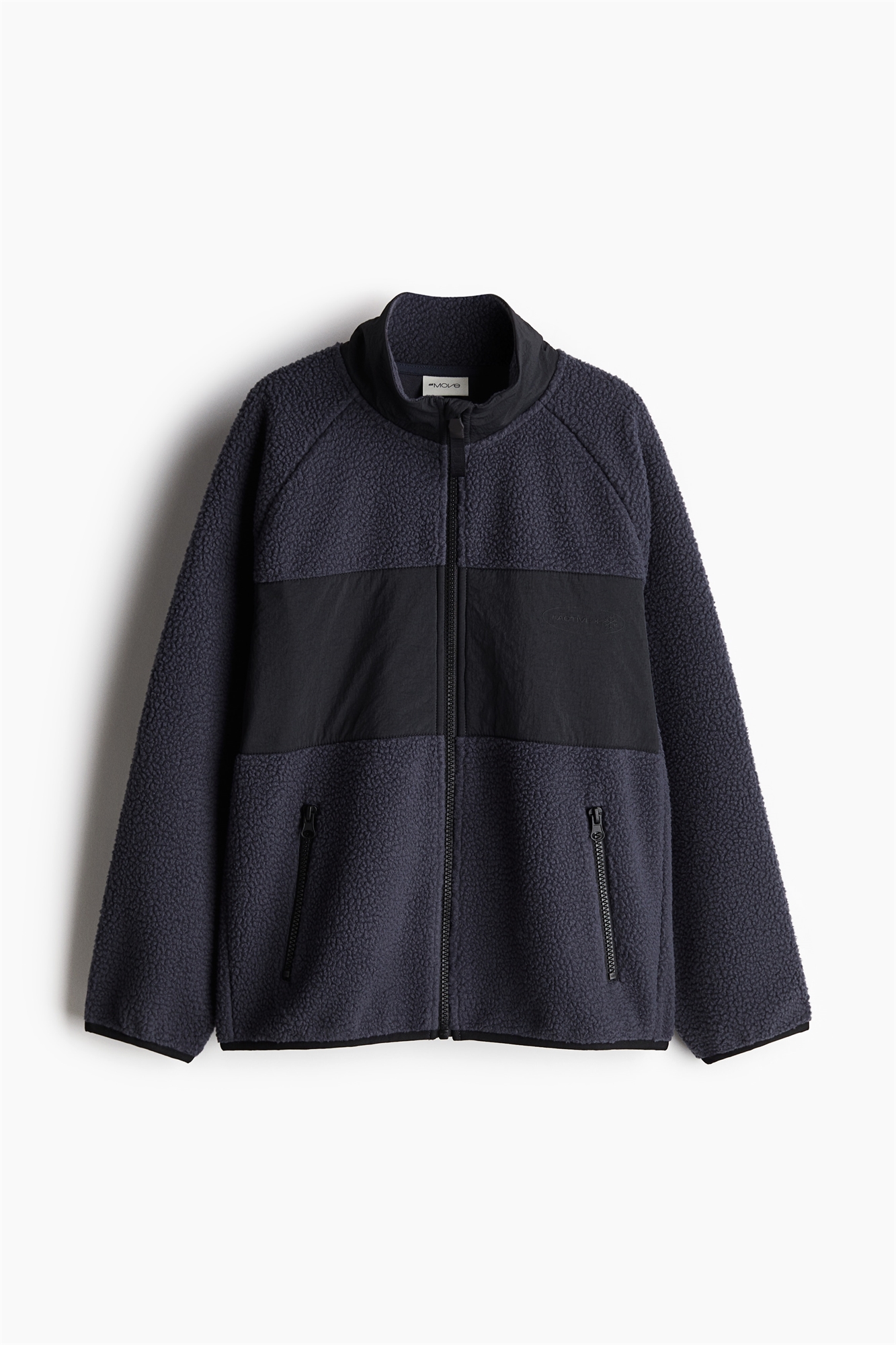 Спортивная куртка из мягкого, согревающего тедди с деталями из нейлона. Свободный крой с воротником-стойкой, застежка-молния спереди с защитой подбородка от натирания и передние карманы на молнии. Длинные рукава реглан и эластичная вязка на манжетах и подоле.