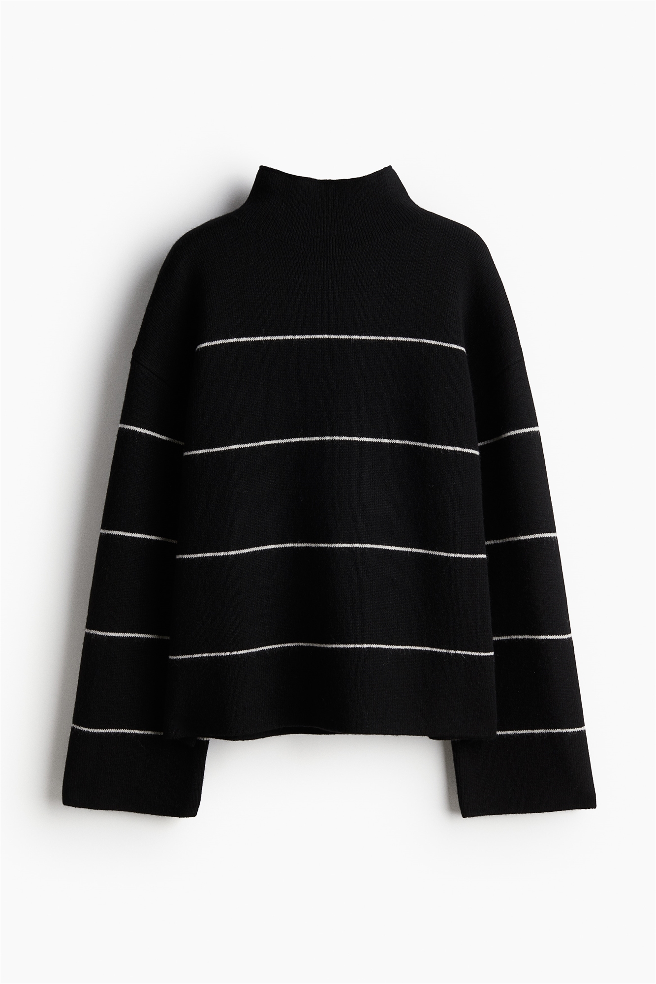 Джемпер свободного покроя из мягкого трикотажа из смеси шерсти. Ребристая горловина, спущенные плечи и длинные широкие рукава.