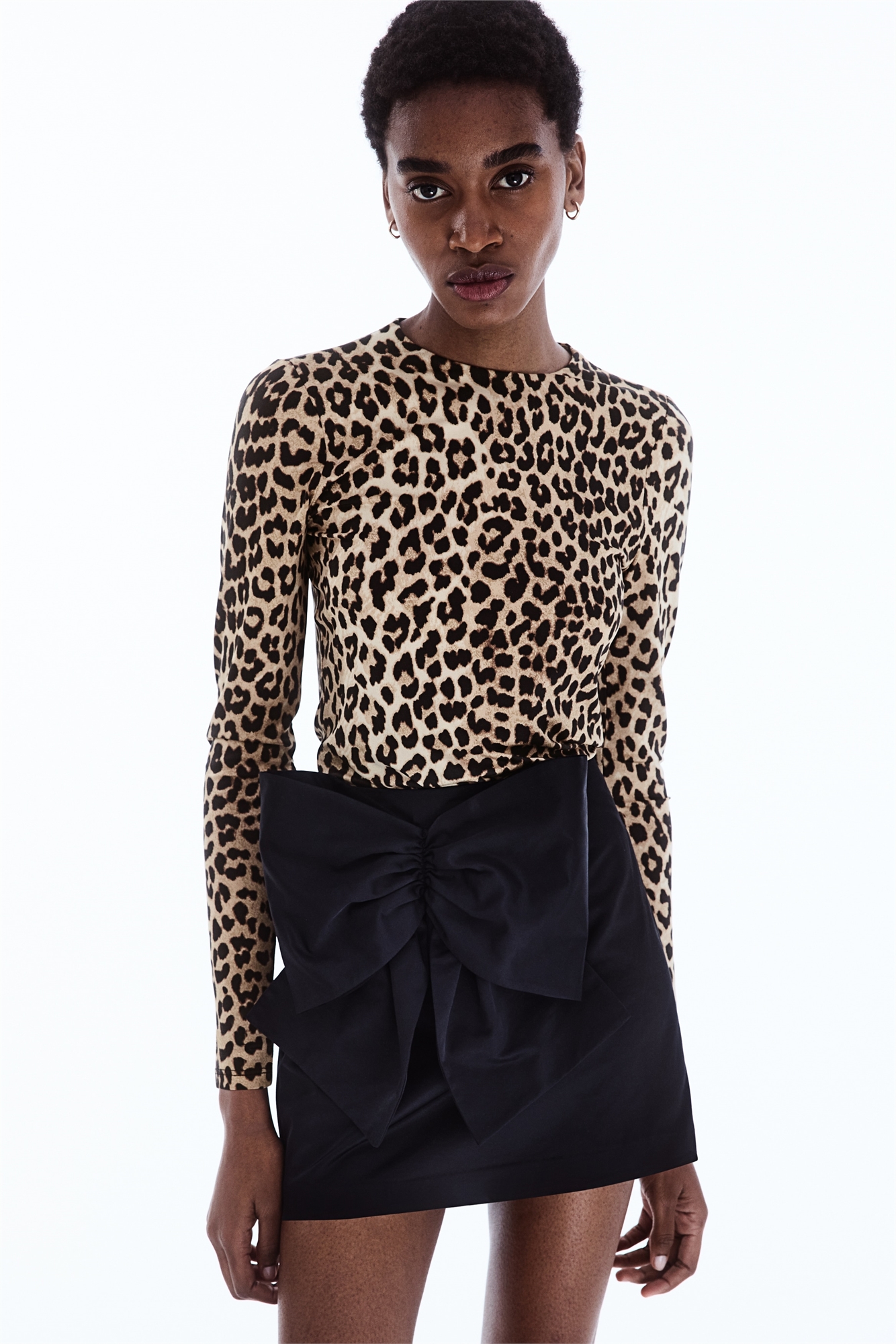 Облегающий топ из эластичного джерси с круглым вырезом и длинными рукавами. Частично на подкладке.