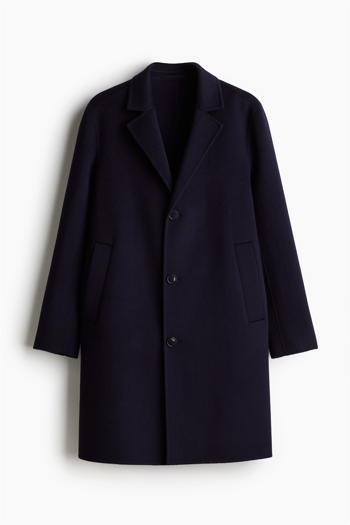 Однобортное пальто длиной до колена из шерсти с пикообразными лацканами, пуговицами спереди, длинными рукавами и втачными карманами спереди. Регулярный крой для комфортного ношения и классического силуэта. Без отделки.