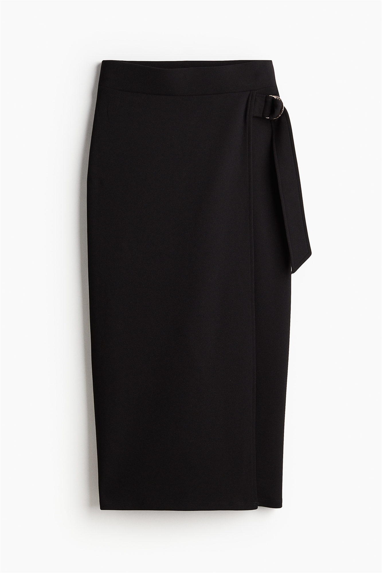 Юбка длиной до колен из джерси с высокой талией и эластичными вставками, с пришитым передом и поясом с металлическими кольцами с одной стороны.