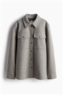 Рубашка оверсайз из мягкой ткани с отложным воротником, металлическими пуговицами спереди и накладными нагрудными карманами на пуговице. Слегка опущенные плечи и длинные рукава с манжетами на пуговицах. Без подкладки.