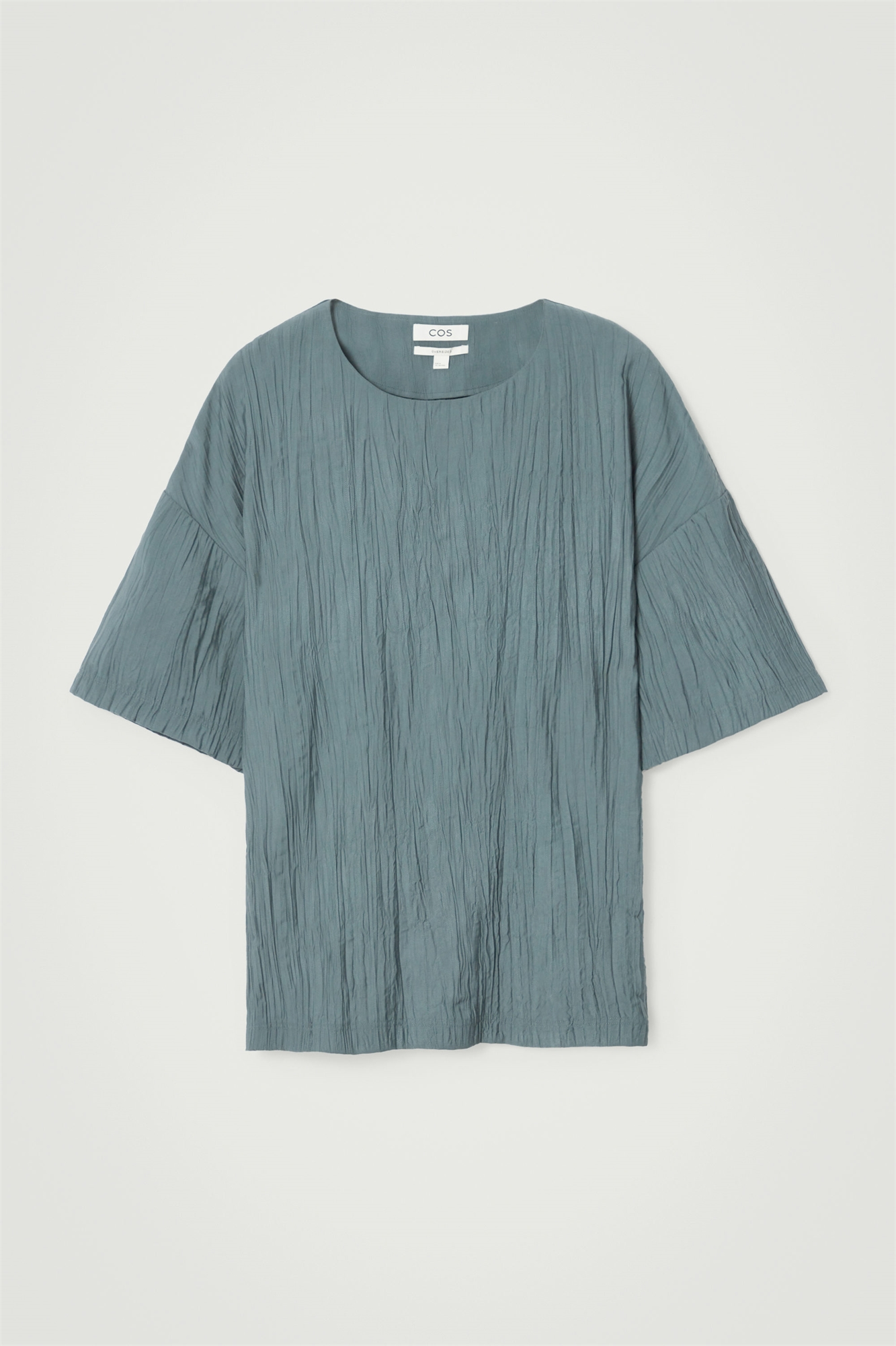 Инновационные материалы придают неформальным базовым вещам свежий вид в этом сезоне. Эта футболка стального синего цвета, выполненная из материала, похожего на кринкл, имеет непринужденный вид и удобную посадку оверсайз. Внешняя ткань: 91% вискоза, 9% полиамид. Детали исключены/Сухая чистка Длина по спинке в размере M = 72 см/Модель носит размер M