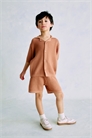 H&M Adorables. Комплект из курортной рубашки и пары шорт из мягкого трикотажа пуантель из высококачественного хлопка. Рубашка с короткими рукавами, воротником-стойкой, пуговицами corozo спереди, манжетами и подолом в мелкую рубчик. Шорты с эластичным поясом на завязках, задним карманом и тонкой трикотажной отделкой по подолу. Коллекция H&M Adorables - это подборка удобных и качественных вещей, не теряющих актуальности.