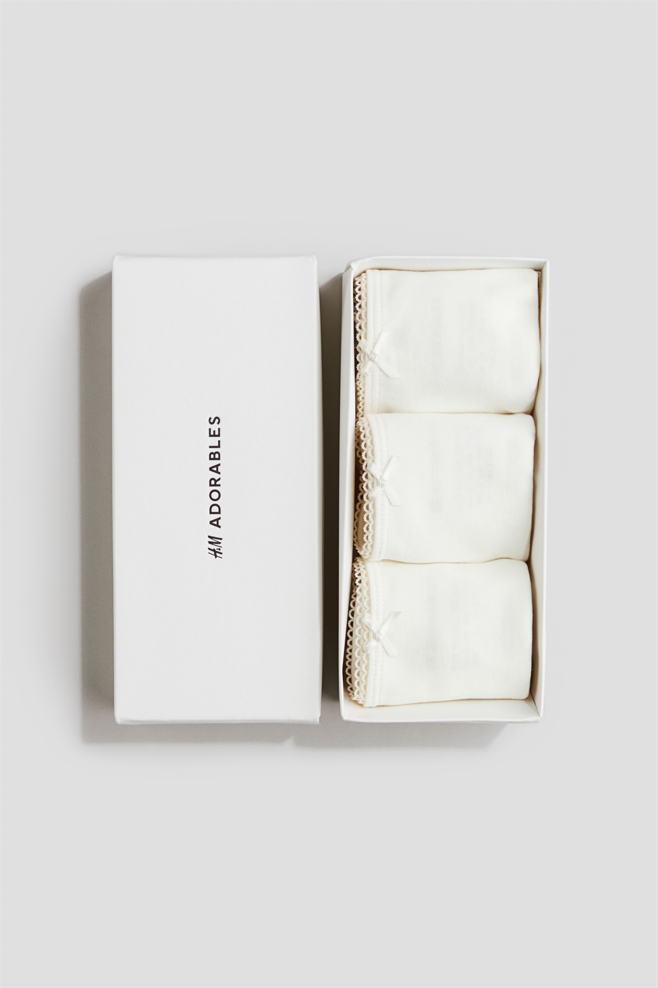 H&M Adorables. Трусы из супермягкого джерси из хлопка пима. Отделка пико и маленький атласный бантик спереди. Наш хлопковый джерси имеет высокий показатель GSM, что означает более плотное и прочное качество без ущерба для комфорта. Коллекция H&M Adorables - это подборка качественных вещей с высоким уровнем комфорта, не подверженных влиянию времени.