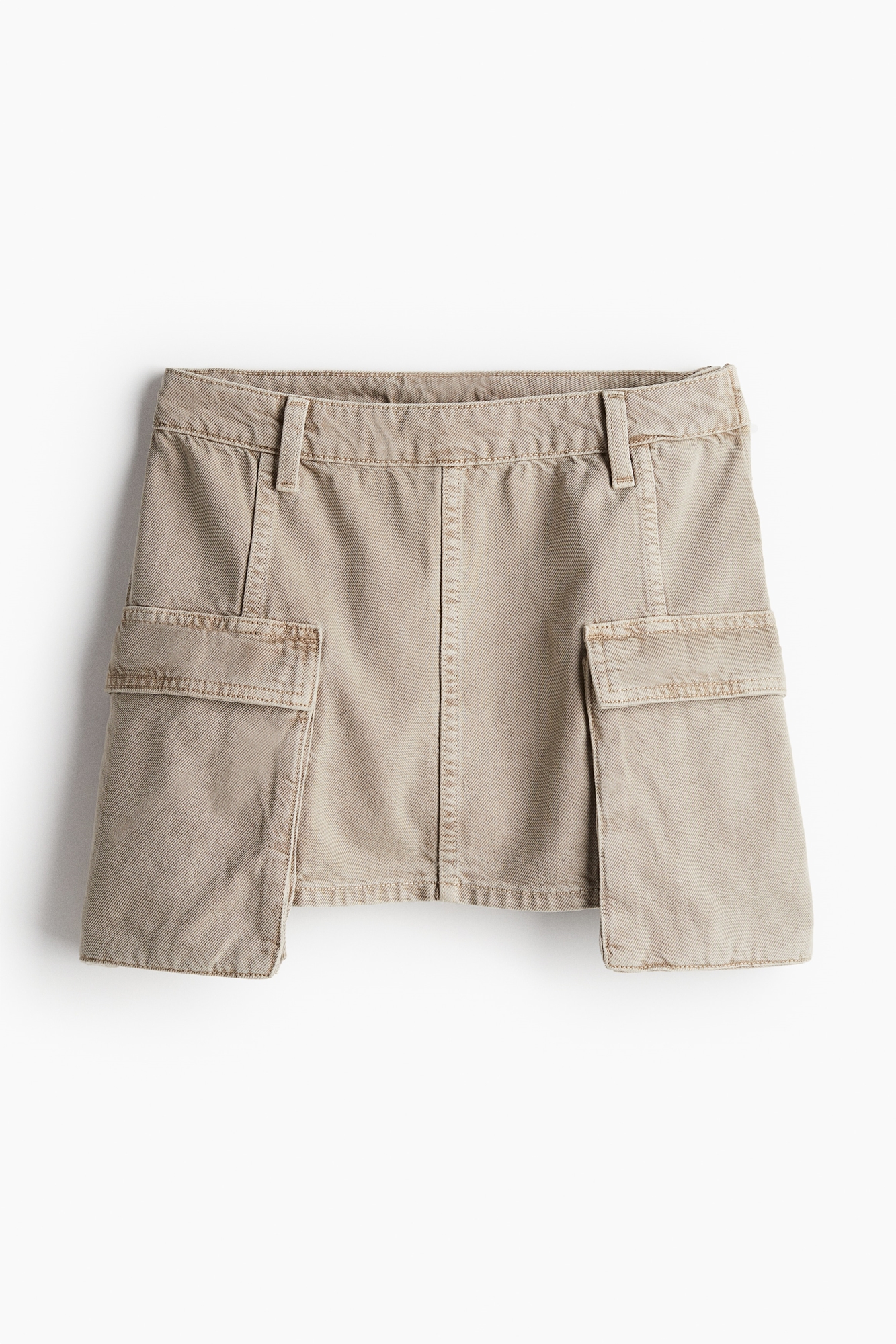 Облегающая юбка-мини из хлопковой саржи с потайной застежкой на молнию и пуговицу с одной стороны. Накладные передние карманы, которые расширяются ниже подола. Без подкладки.