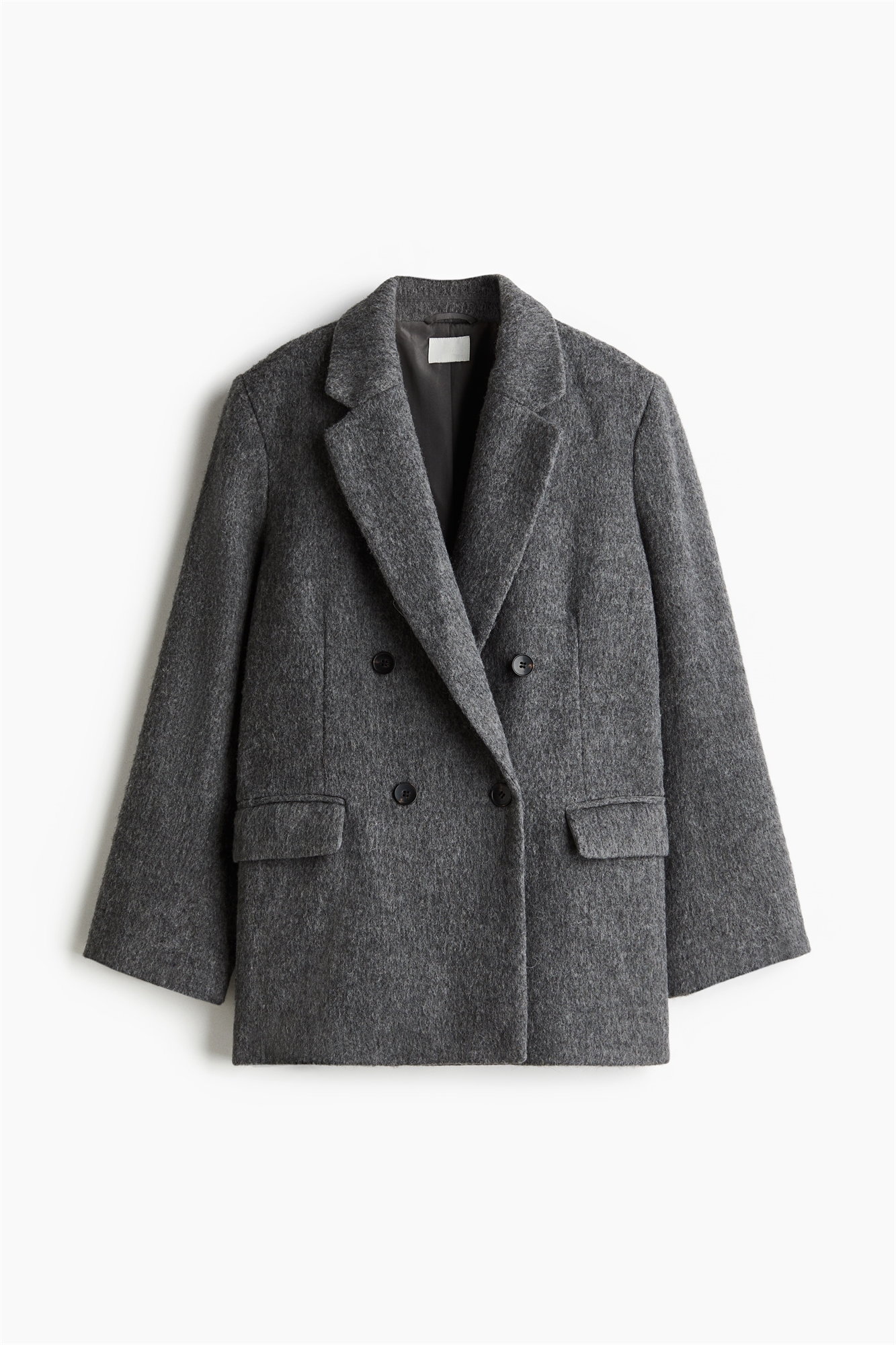 Двубортный блейзер из войлока и шерстяного бленда с лацканами с вырезом и пуговицами спереди. Струйные передние карманы с клапаном, подплечники и декоративные пуговицы на манжетах. Одиночная вентиляция сзади. На подкладке.