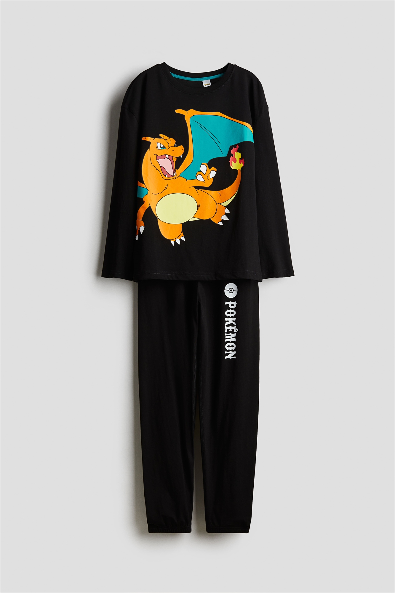 Пижама из принтованного хлопкового джерси. Топ с длинными рукавами, круглым вырезом и спущенными плечами. Нижние штанины с эластичной отделкой на талии и подол.