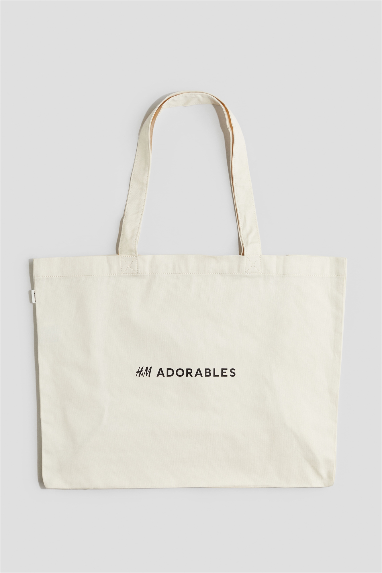 H&M Adorables. Сумка-тоут из хлопковой саржи с текстовым принтом спереди и двумя ручками сверху. Глубина 21 см. Высота 38 см. Ширина 47 см. Коллекция H&M Adorables - это подборка удобных и качественных вещей, не теряющих актуальности.
