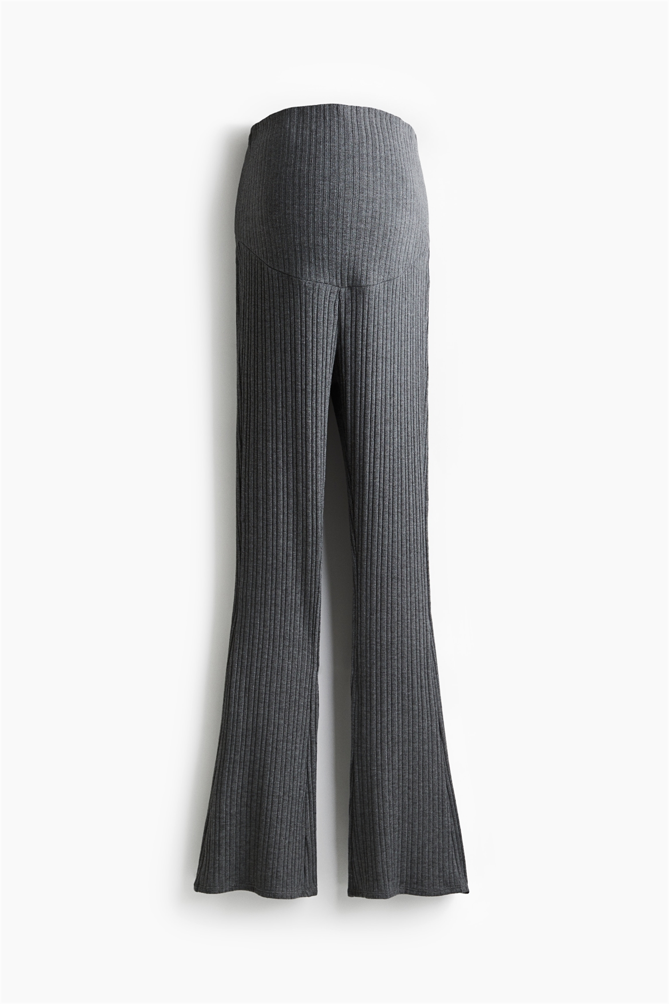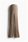 Нежные расклешенные брюки из мягкого трикотажа с широким отложным поясом для комфортной посадки во время и после беременности.