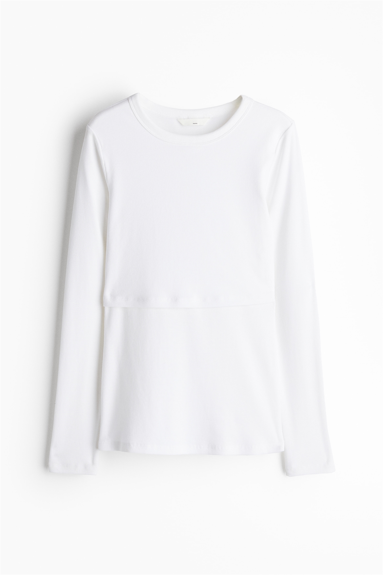 Облегающий топ для кормления из мягкого ребристого трикотажа с уникальной функцией кормления. Круглый вырез, длинные рукава и двойной слой в верхней части, помогающий сохранить тепло и облегчающий доступ к груди.