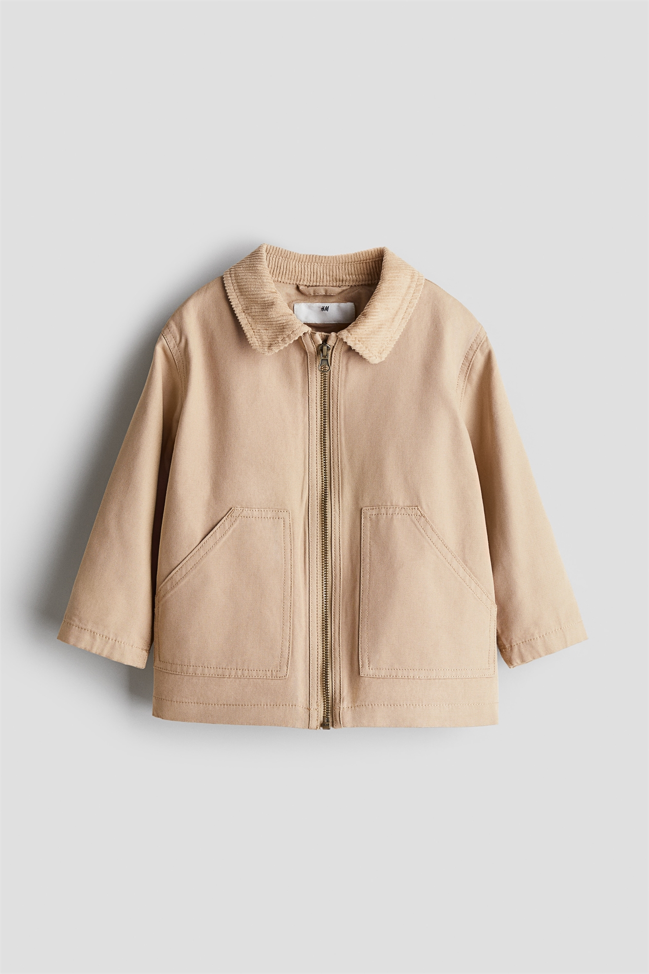 Куртка из хлопкового холста с вельветовым отложным воротником. Застежка-молния спереди, спущенные плечи и накладные передние карманы. Хлопковая подкладка.