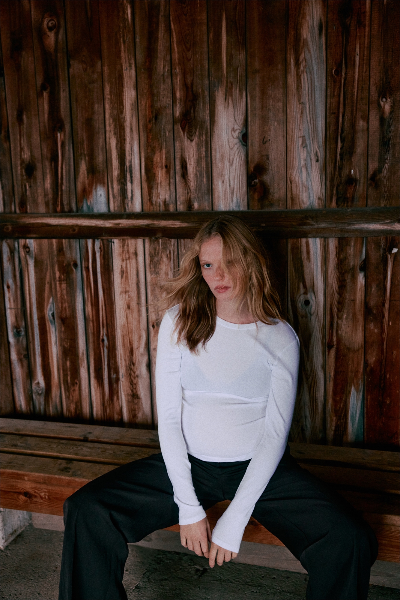 Топы из мягкого хлопкового джерси с круглым вырезом, длинными рукавами и прямым покроем.