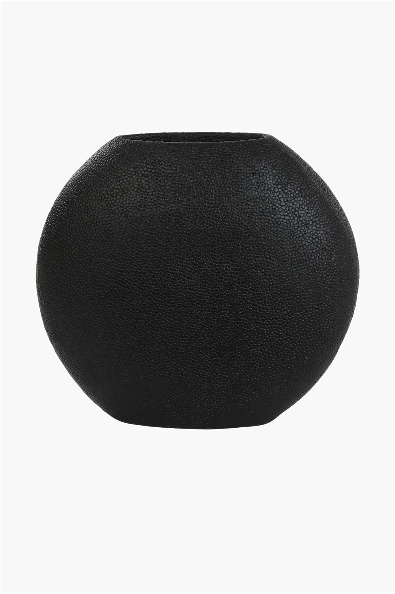 Декоративная ваза Rayskin - это плоская ваза красивой круглой формы. Эта ваза имеет роскошный матовый черный цвет и поэтому подходит для любого стиля интерьера. В узкое отверстие сверху помещается всего несколько веточек или перьев, но именно это делает вазу такой завершенной. Если наполнить эту вазу небольшим количеством искусственных цветов, создастся ощущение "меньше - больше"! Выберите красочное наполнение для этой черной вазы и поставьте вазу на подоконник или на приставной столик. Вазу легко держать в руках, а благодаря нейтральному пластиковому основанию она впишется в любой интерьер. Но не стоит заблуждаться, эта ваза имеет красивую пятнистую поверхность, благодаря которой ваза будет выделяться, где бы вы ее ни разместили. Размер: 40 x 14 x 36