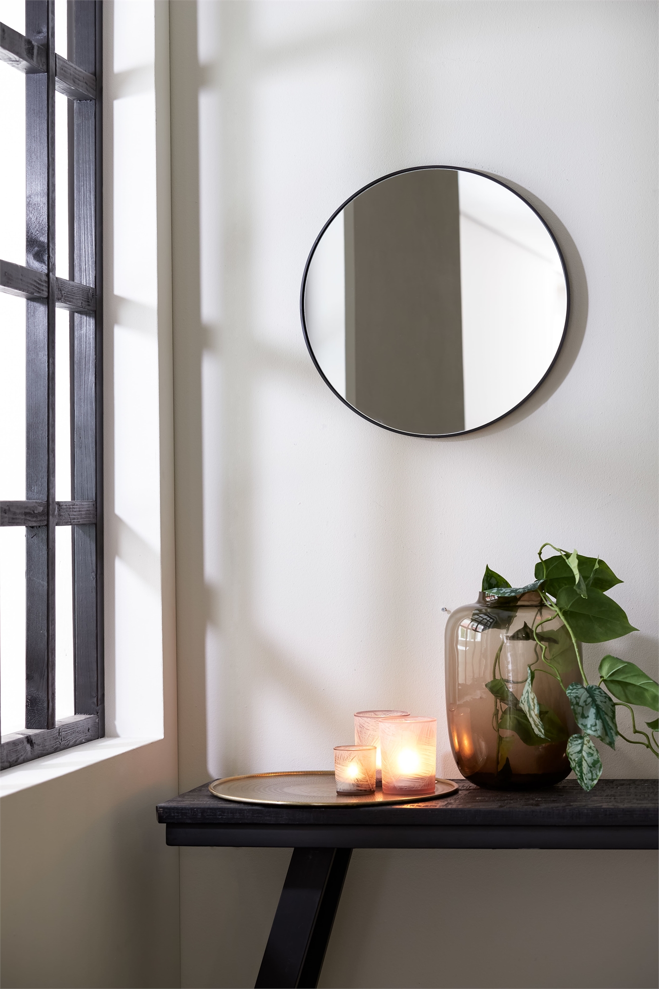 Круглое зеркало - простое, но прекрасное дополнение к любому интерьеру. Зеркало Espejo светлого цвета отделано тонким металлическим ободком черного цвета. Диаметр настенного зеркала составляет 50 см, что делает его идеальным размером для подвешивания в любом месте. Это современное зеркало выглядит особенно декоративно в сочетании с другими зеркалами разных размеров. Размер: 50 x 1,5 x 50
