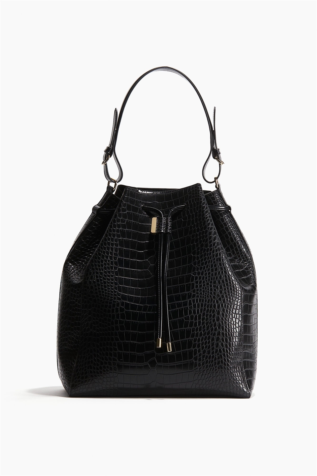 Большая сумка-ведро из ткани с покрытием, застежка на шнурке, регулируемая ручка и внутреннее отделение. На подкладке. Глубина 18 см. Ширина 30 см. Высота 41 см.