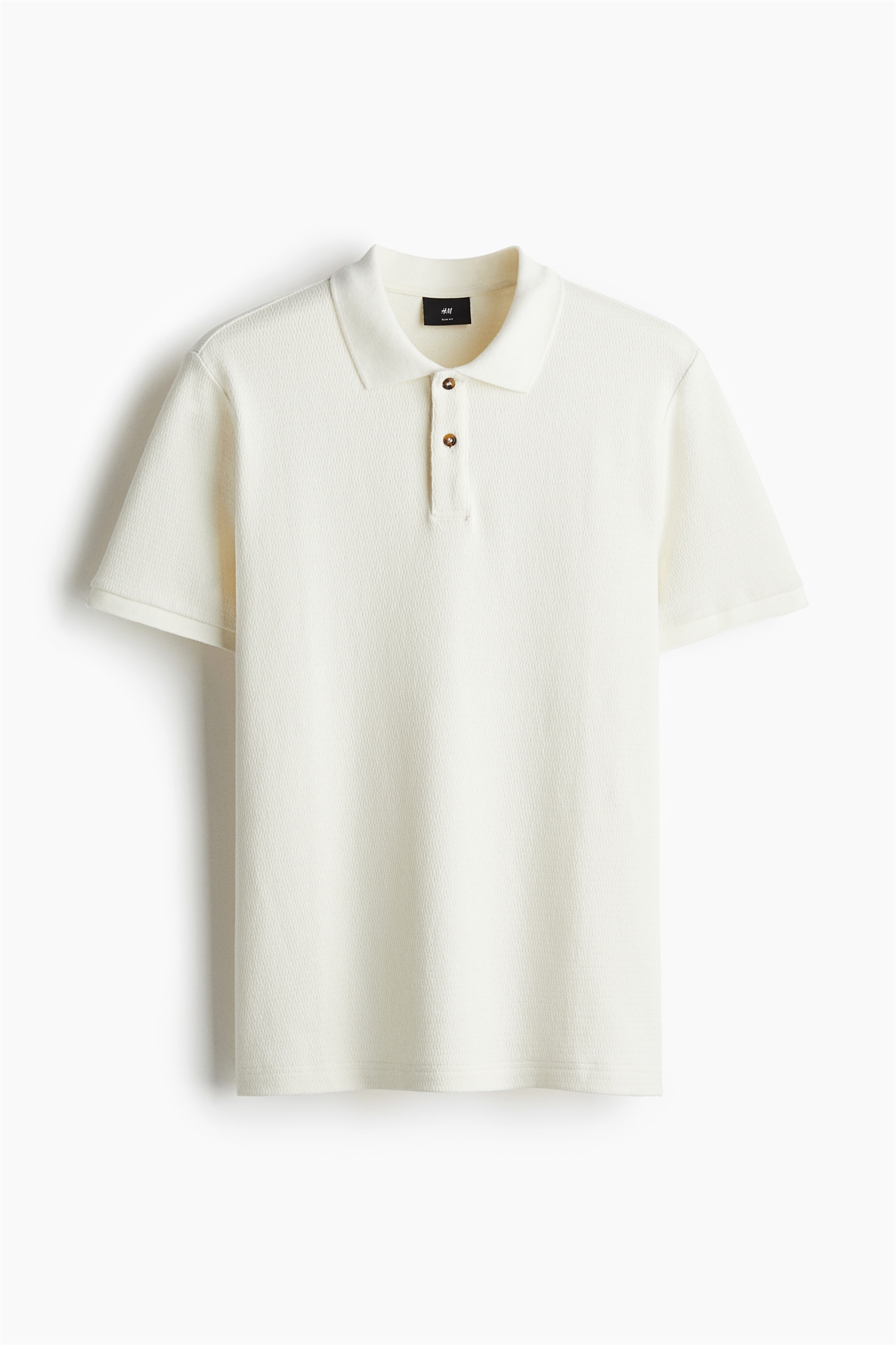 Рубашка-поло из мягкого хлопкового трикотажа с воротником, застежкой на пуговицы, короткими рукавами и прямым покроем. Зауженный крой, облегающий контуры тела и создающий приталенный силуэт.