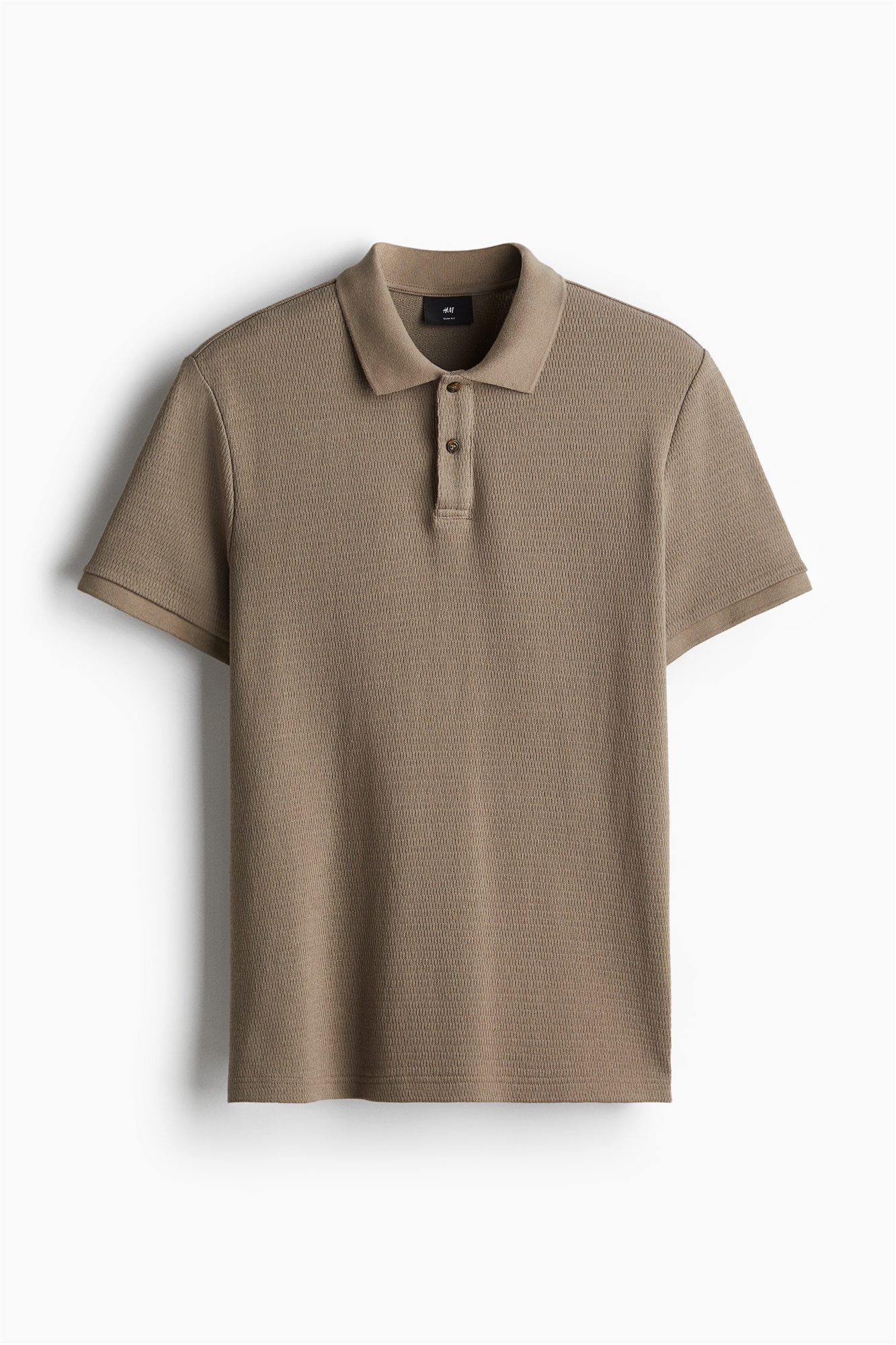 Рубашка-поло из мягкого хлопкового трикотажа с воротником, застежкой на пуговицы, короткими рукавами и прямым покроем. Зауженный крой, облегающий контуры тела и создающий приталенный силуэт.