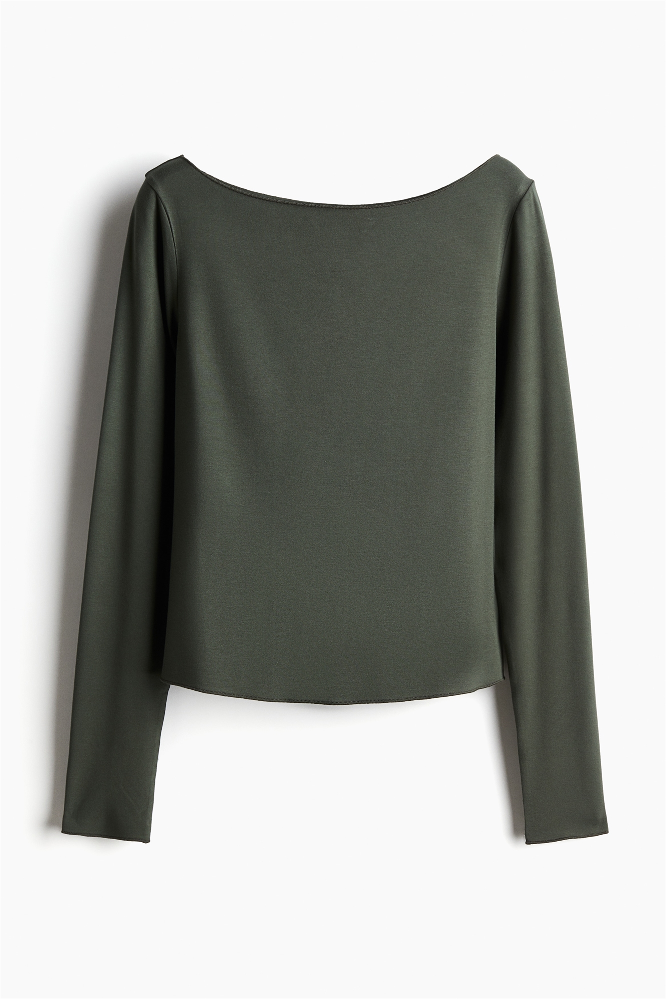 Облегающий топ из мягкого вискозного джерси с вырезом-лодочкой и длинными рукавами.