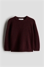 Джемпер свободного покроя из мягкого трикотажа с круглым вырезом в рубчик, длинными рукавами реглан и рубчиками на манжетах и подоле.