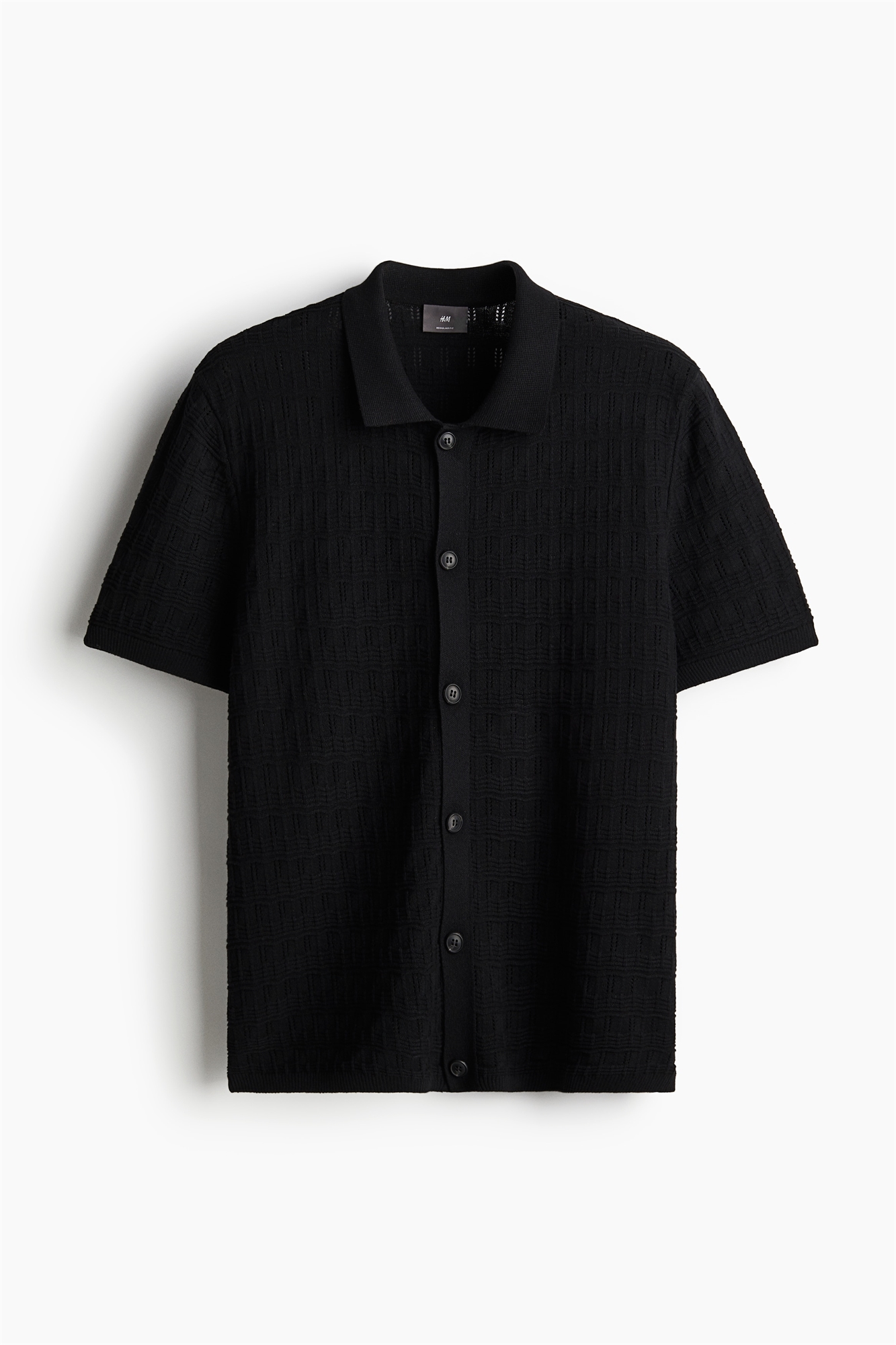 Рубашка с короткими рукавами из мягкого трикотажа пуантель из хлопковой смеси с воротником, пуговицами спереди и прямым подолом. Регулярный крой для комфортной носки и классического силуэта.