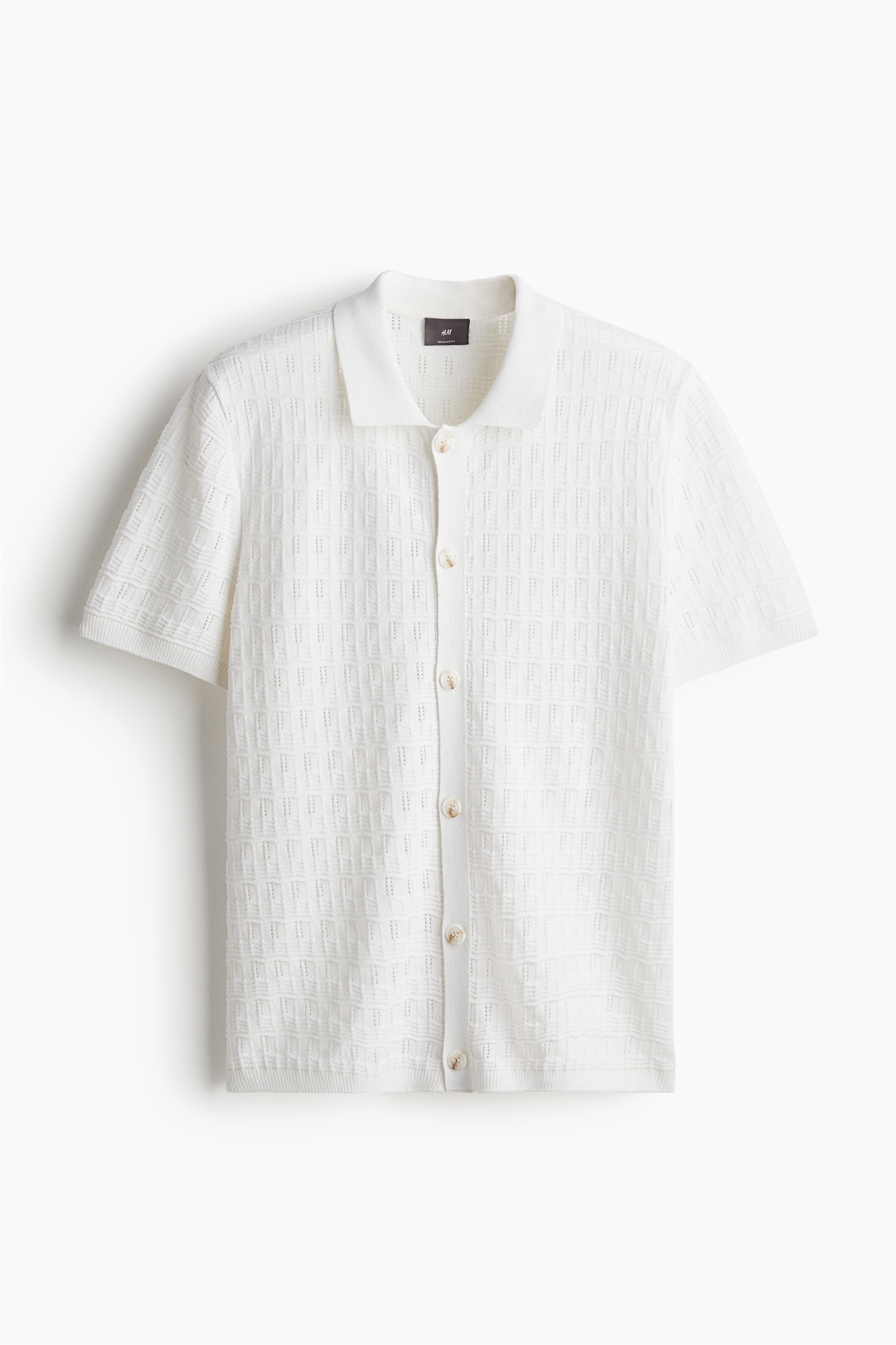 Рубашка с короткими рукавами из мягкого трикотажа пуантель из хлопковой смеси с воротником, пуговицами спереди и прямым подолом. Регулярный крой для комфортной носки и классического силуэта.