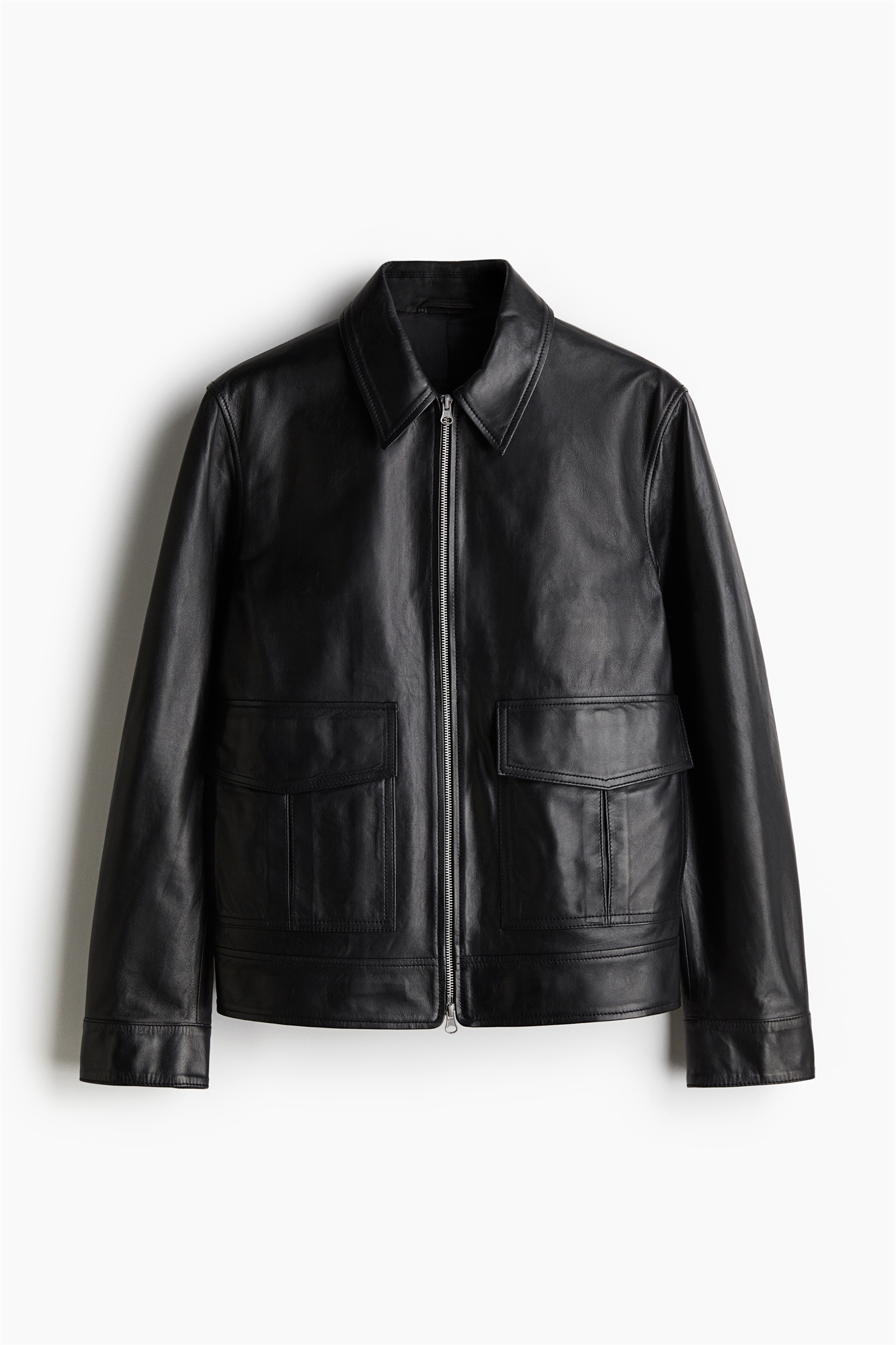 Куртка из кожи с классическим воротником, застежкой на молнию спереди, длинными рукавами с манжетами и накладными карманами спереди. Регулярный крой для комфортной носки и классического силуэта. На подкладке.