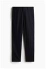 Брюки из шерстяного микса с потайной застежкой на крючок и глазок на поясе и ширинкой на молнии. Боковые карманы и втачные задние карманы на пуговице. Зауженный крой, облегающий контуры тела и создающий приталенный силуэт.