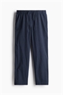 Брюки из хлопкового поплина с эластичным, утягивающим поясом, фальшивой ширинкой и неброскими карманами в боковых швах. Расслабленный крой для непринужденного, но не чрезмерного силуэта.
