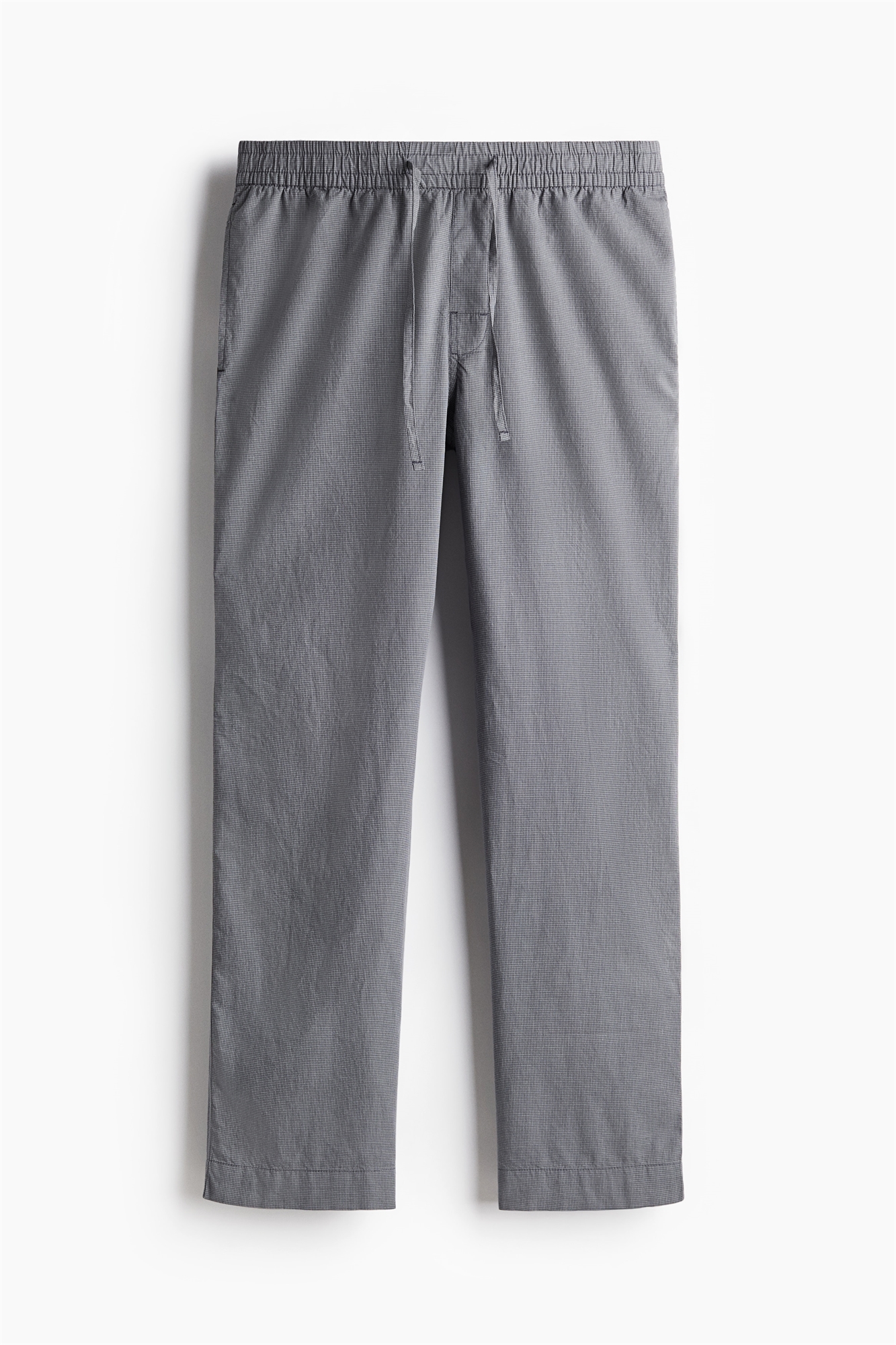 Брюки из хлопкового поплина с эластичным, утягивающим поясом, фальшивой ширинкой и неброскими карманами в боковых швах. Расслабленный крой для непринужденного, но не чрезмерного силуэта.