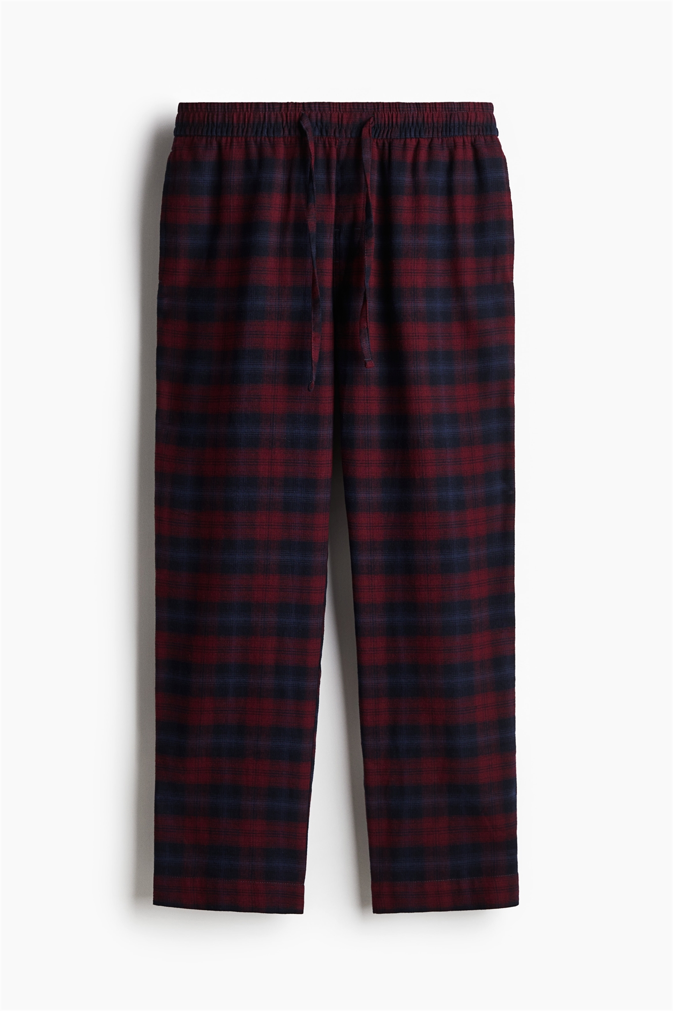 Пижамные брюки из мягкой фланели с эластичным поясом, затягивающимся шнурком, фальшивой ширинкой и боковыми карманами.