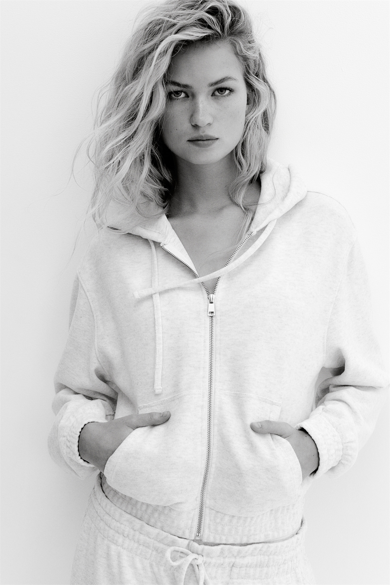 Толстовка на молнии из ребристого джерси с двухслойным капюшоном на завязках и застежкой-молнией спереди. Свободный крой, спущенные плечи и длинные рукава. Передние карманы и эластичные манжеты и подол.