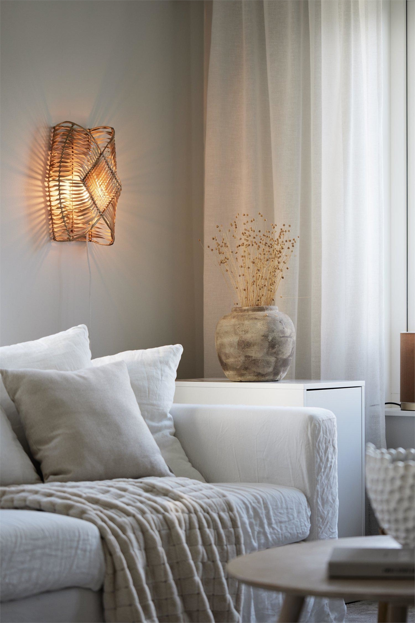 Настенный светильник Zyla изготовлен из тонкого витого ротанга. Декоративный настенный светильник ручной работы, создающий уютную атмосферу и отбрасывающий привлекательную тень при освещении. Поставляется с белым 4-метровым кабелем с выключателем и плоской вилкой ЕС. Высота 36 см, ширина 31 см, глубина 13,5 см. Кольцо E14. Максимальная мощность 15 Вт. Используйте светодиодную лампу. Натуральный материал может менять цвет, каждый абажур изготавливается вручную, возможны незначительные отклонения в размерах.