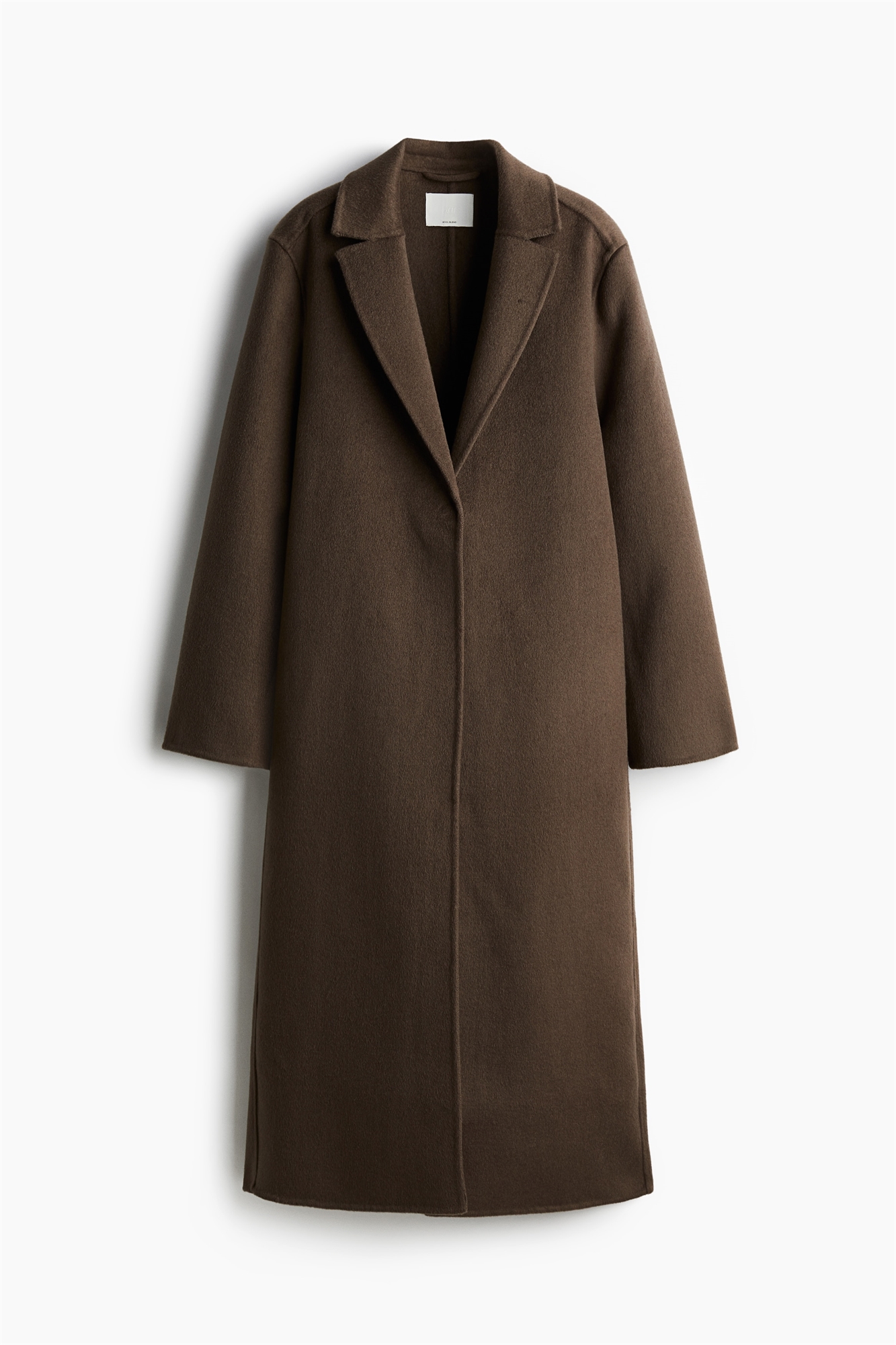 Пальто больших размеров ручной работы из микса валяной шерсти. Зазубренные лацканы, потайная застежка на кнопки спереди и незаметные боковые карманы. Высокая одинарная вентиляция сзади.