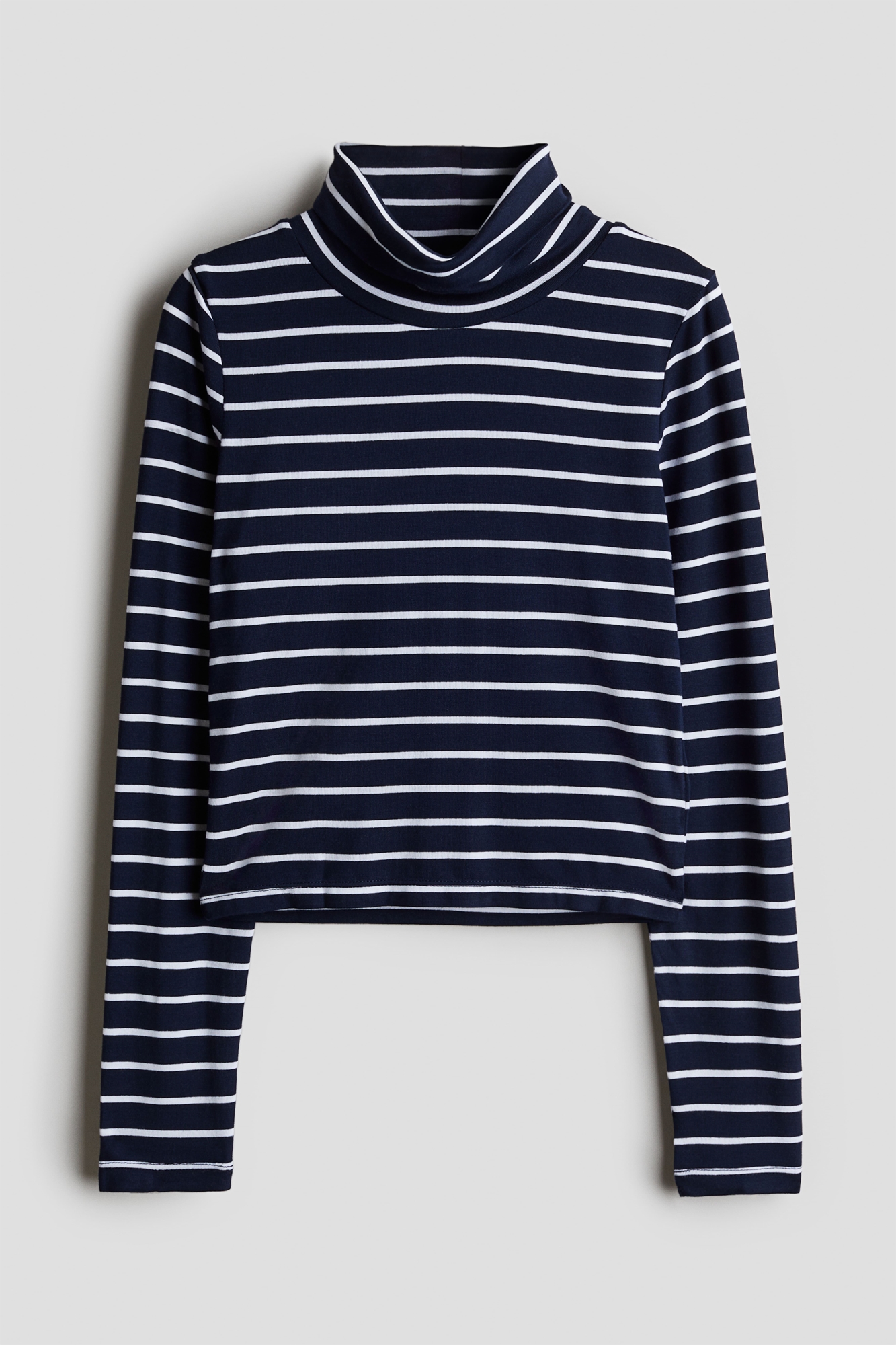 Короткий топ из мягкого трикотажа с высокой горловиной, длинными рукавами и прямым кроем.