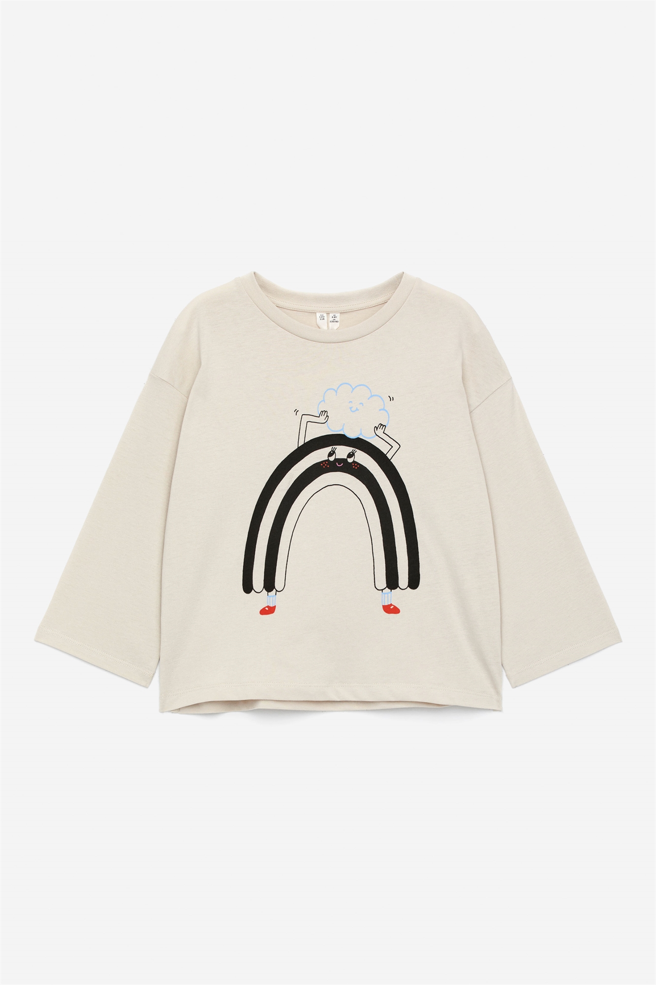 Футболка с длинными рукавами и спущенными плечами из хлопкового джерси. Обычный крой.