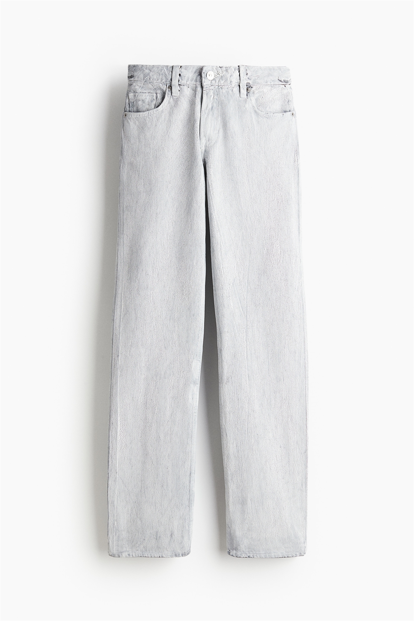 Брюки с 5 карманами из жесткой хлопковой саржи с эффектом кракелюра. Заниженная талия, ширинка на молнии и пуговице, прямые ноги.