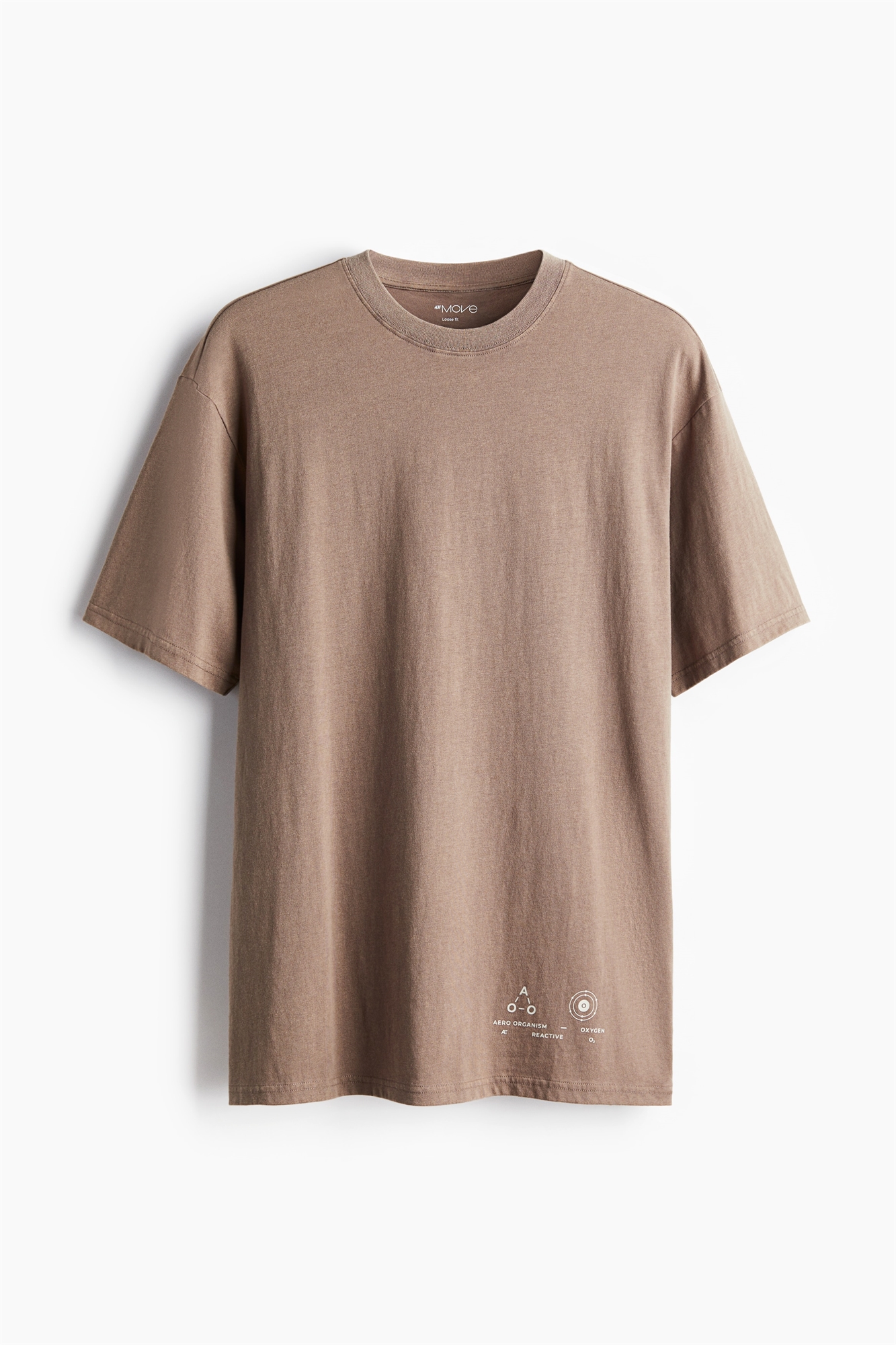 Спортивный топ из функциональной ткани с добавлением DryMove™, которая отводит влагу от кожи, обеспечивая комфортную сухость во время движения. Свободный крой с круглым вырезом, короткими рукавами и застиранным видом.