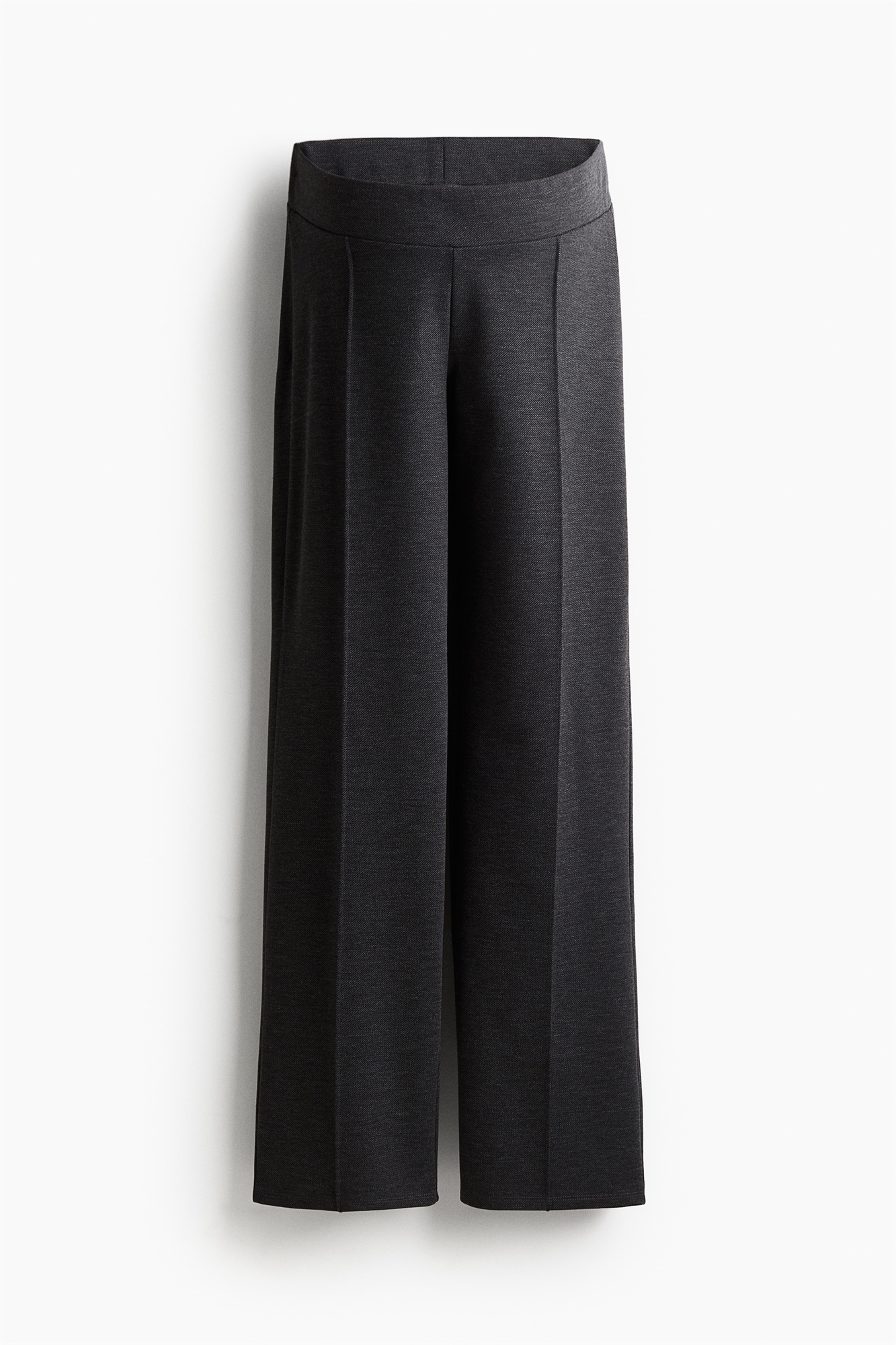 Брюки из плотного джерси-саржи с заниженной, эластичной талией и прямыми ногами с застроченными складками спереди.