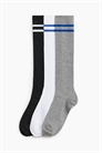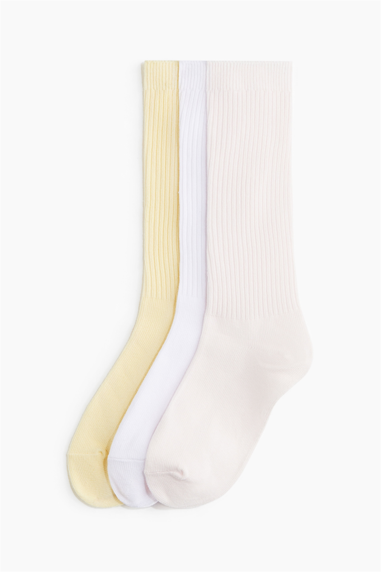 Спортивные носки до колена из мягкого тонкого трикотажа с ребристой спинкой и эластичным верхом.
