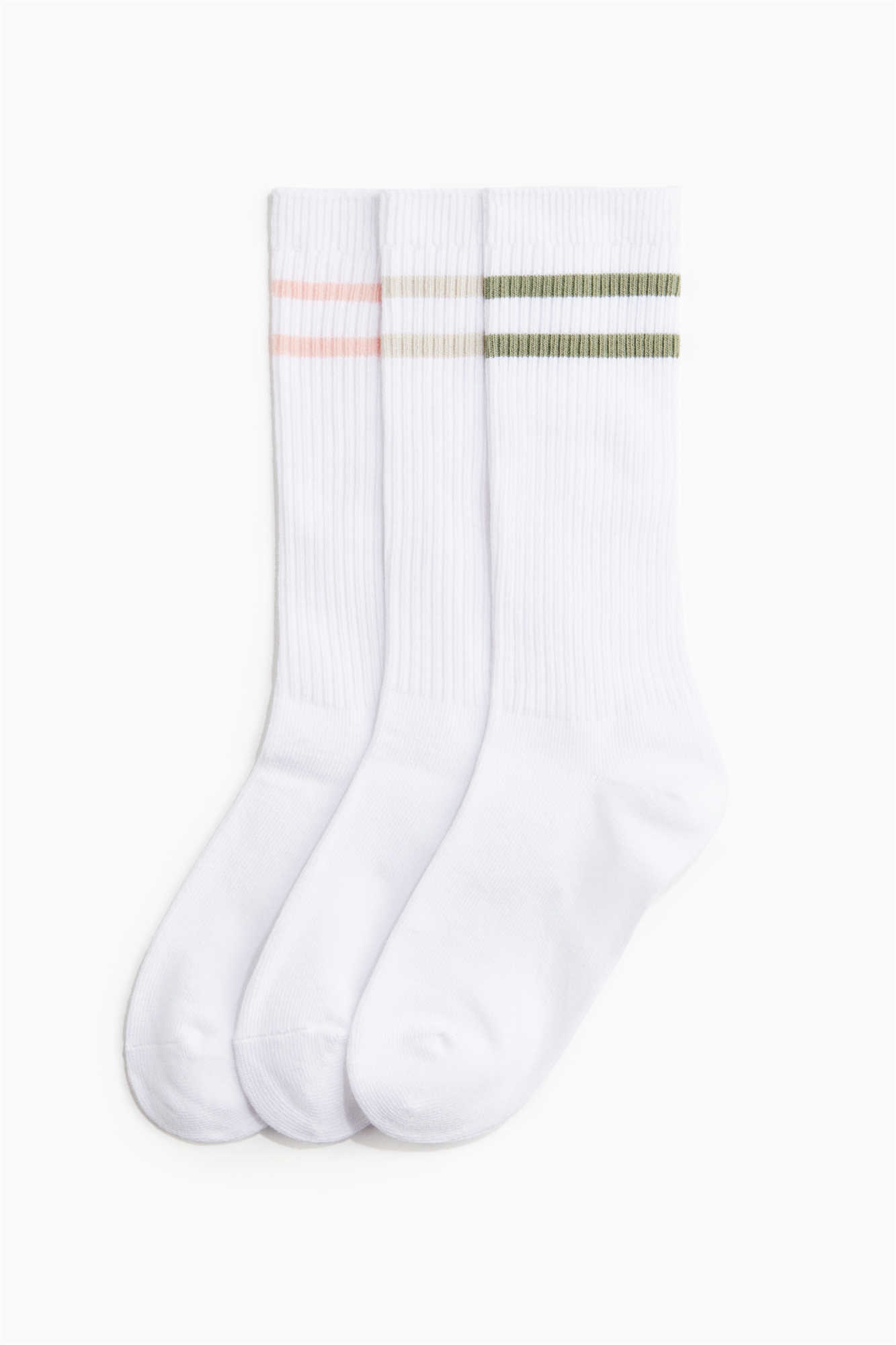 Спортивные носки до колена из мягкого тонкого трикотажа с ребристой спинкой и эластичным верхом.