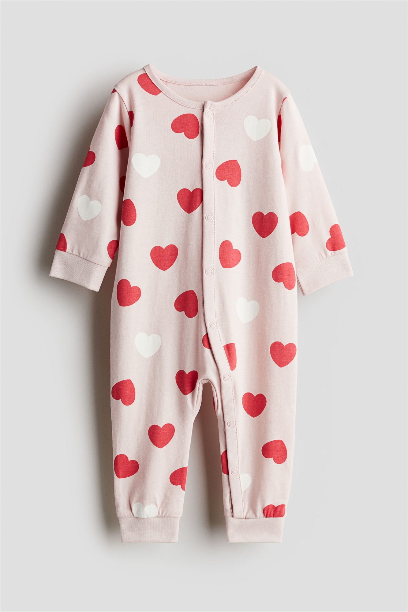 Спальный костюм из мягкого хлопкового джерси с принтом. Круглый вырез, застежки спереди и по одной ноге. Ребристые манжеты и кайма.