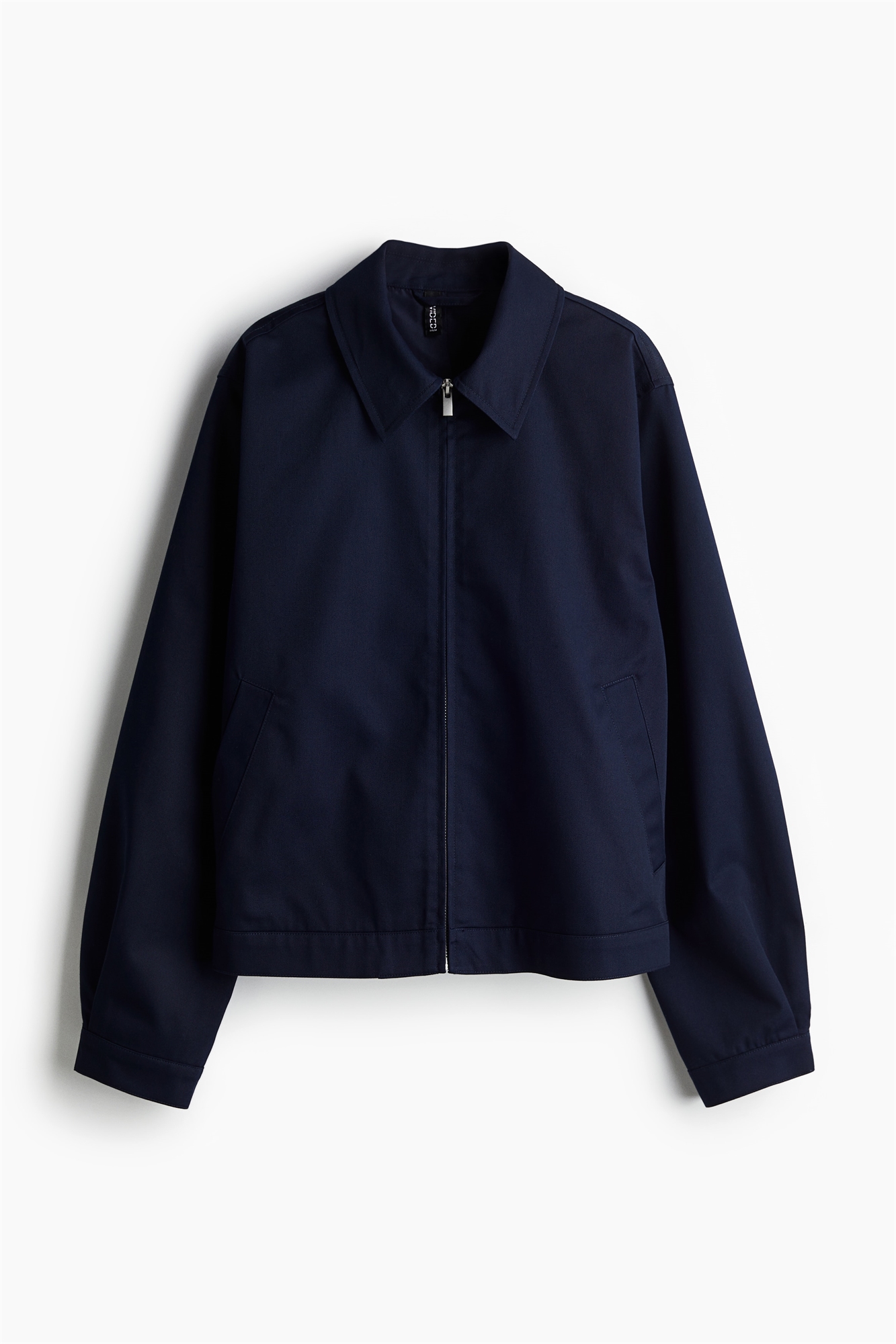 Куртка из саржи с воротником и потайной застежкой-молнией спереди. Накладные карманы спереди, слегка спущенные плечи, манжеты на пуговицах и эластичная резинка сзади на подоле. На подкладке.